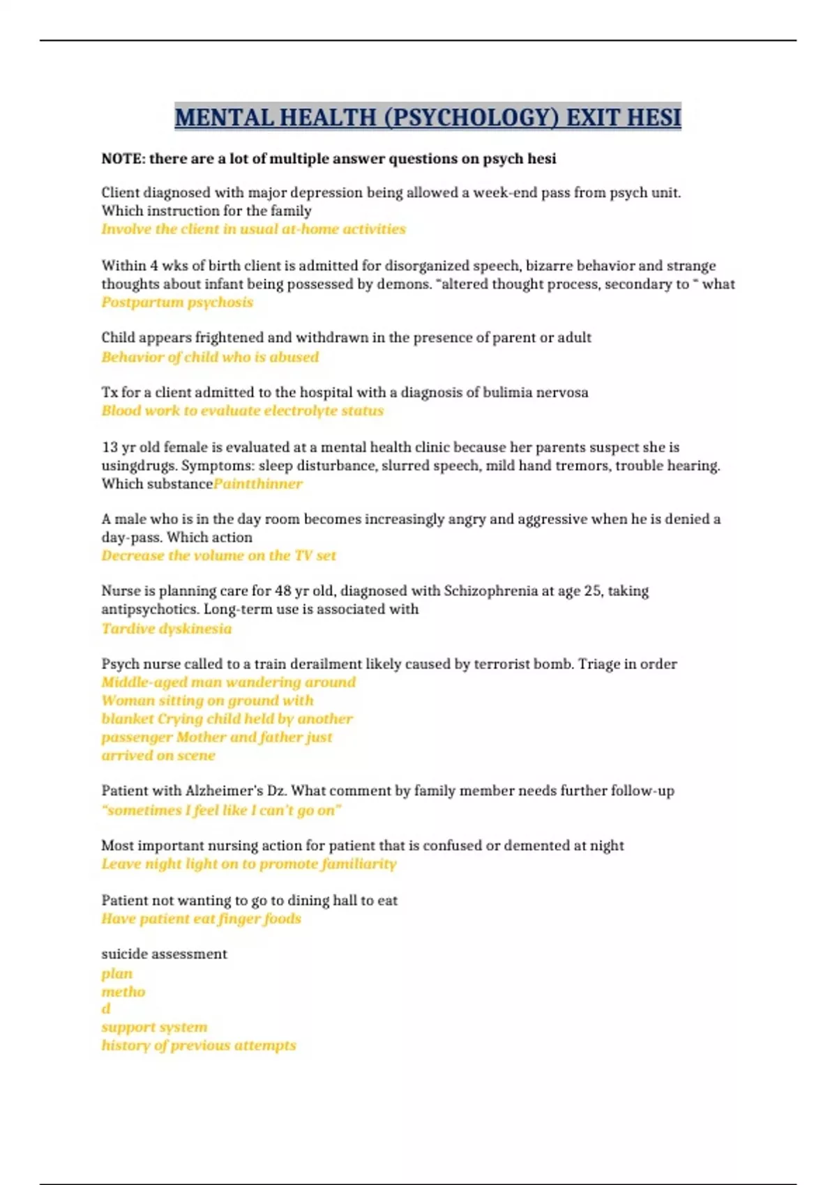 MENTAL HEALTH EXIT HESI