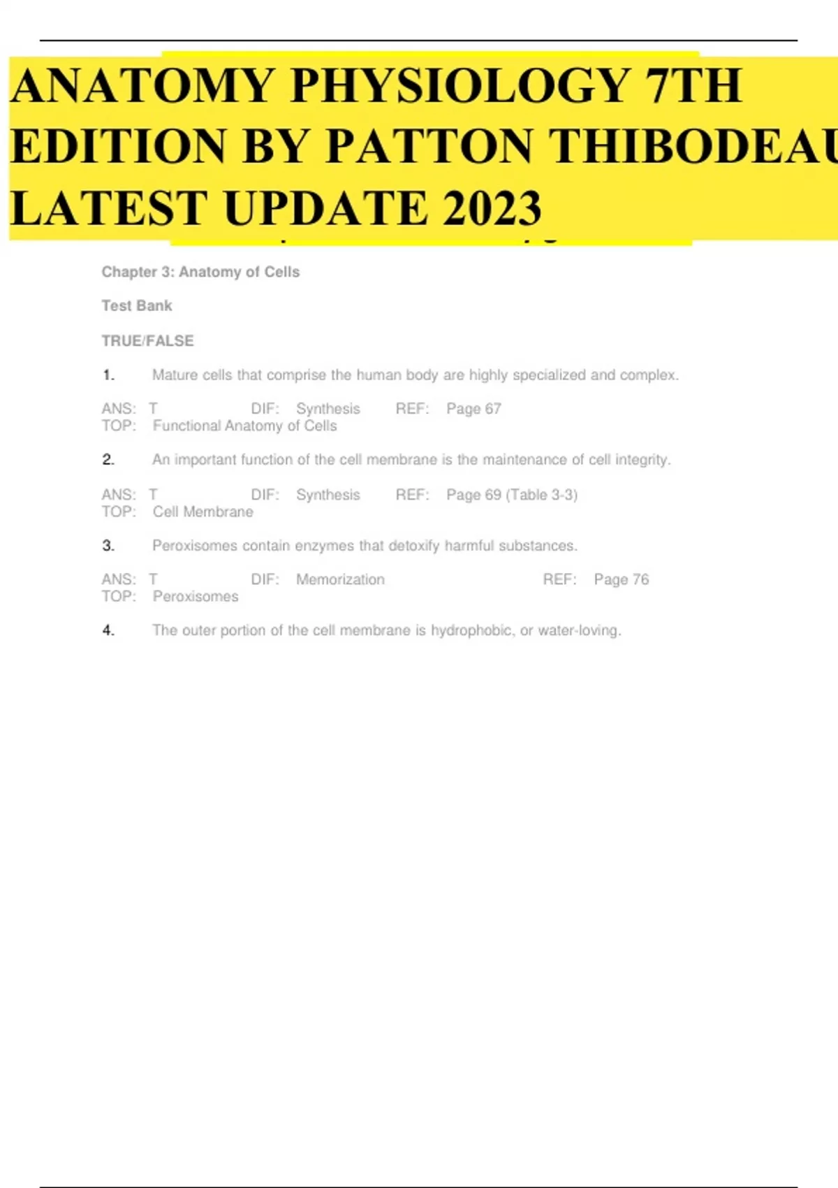anatomy physiology 7th edition by patton thibodeau – test bank updated 2023