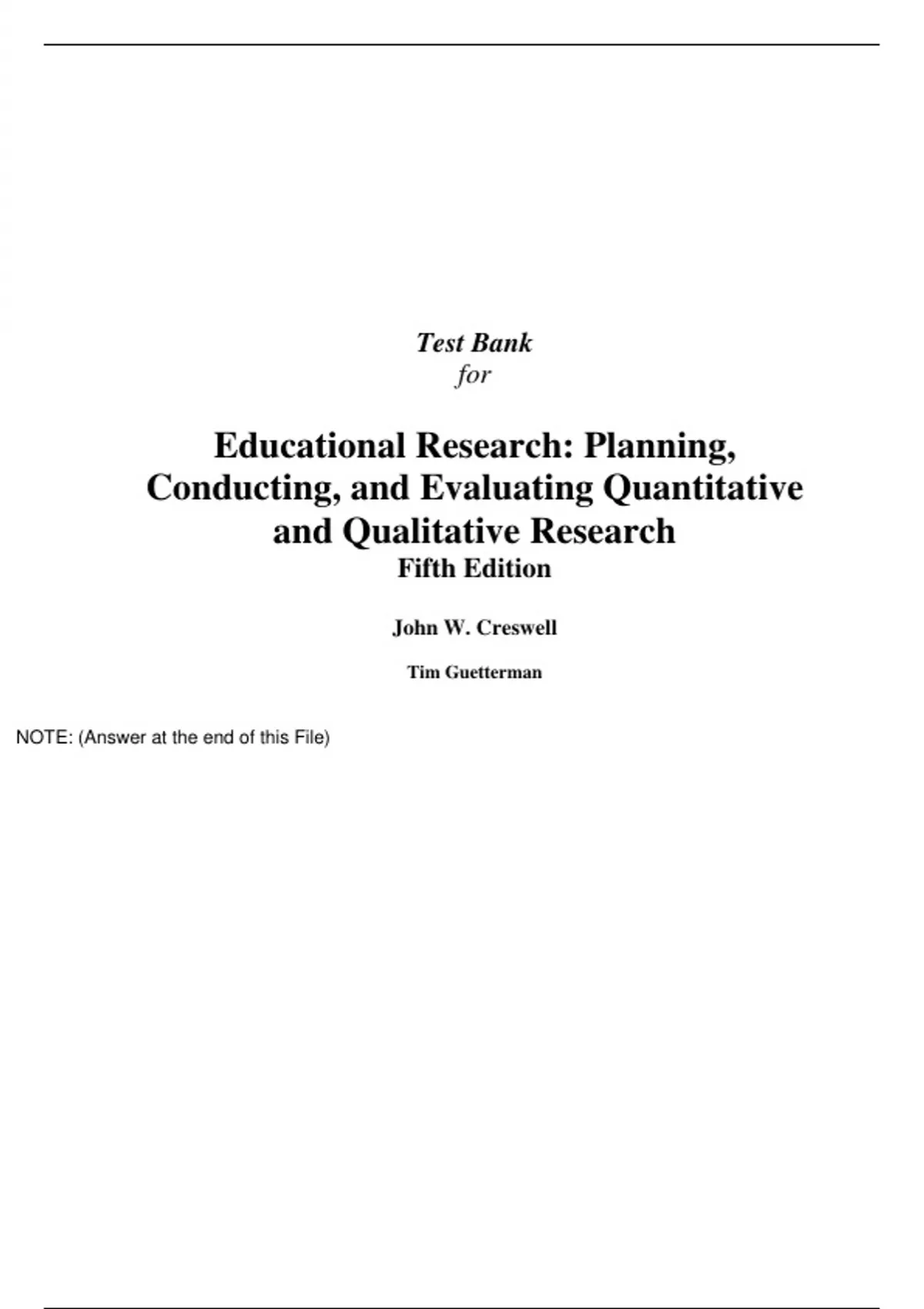 Educational Research Planning, Conducting, and Evaluating Quantitative and Qualitative Research 5e John W. Creswell (Test Bank) Educational Research Planning, Conducting, and Evaluating Quantitative and Qualitative Research 5e John W. Creswell (Test Bank)