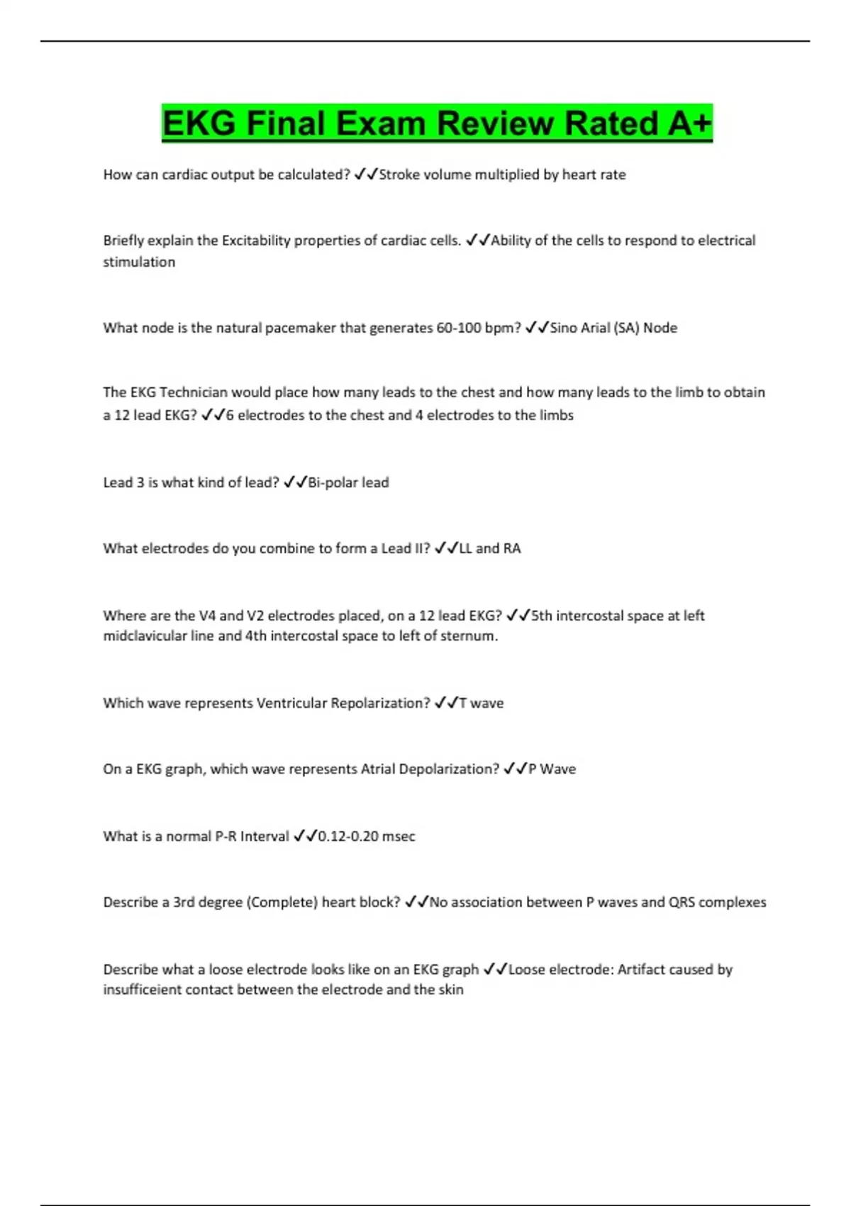EKG Final Exam Review