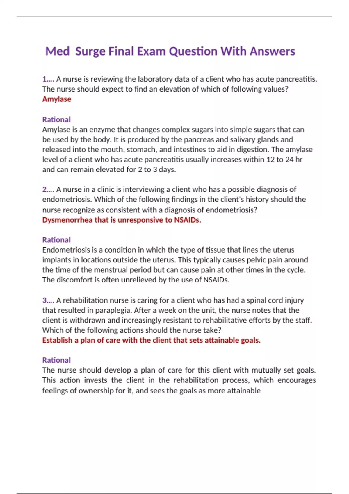 Med Surge Final Exam Question With Answers