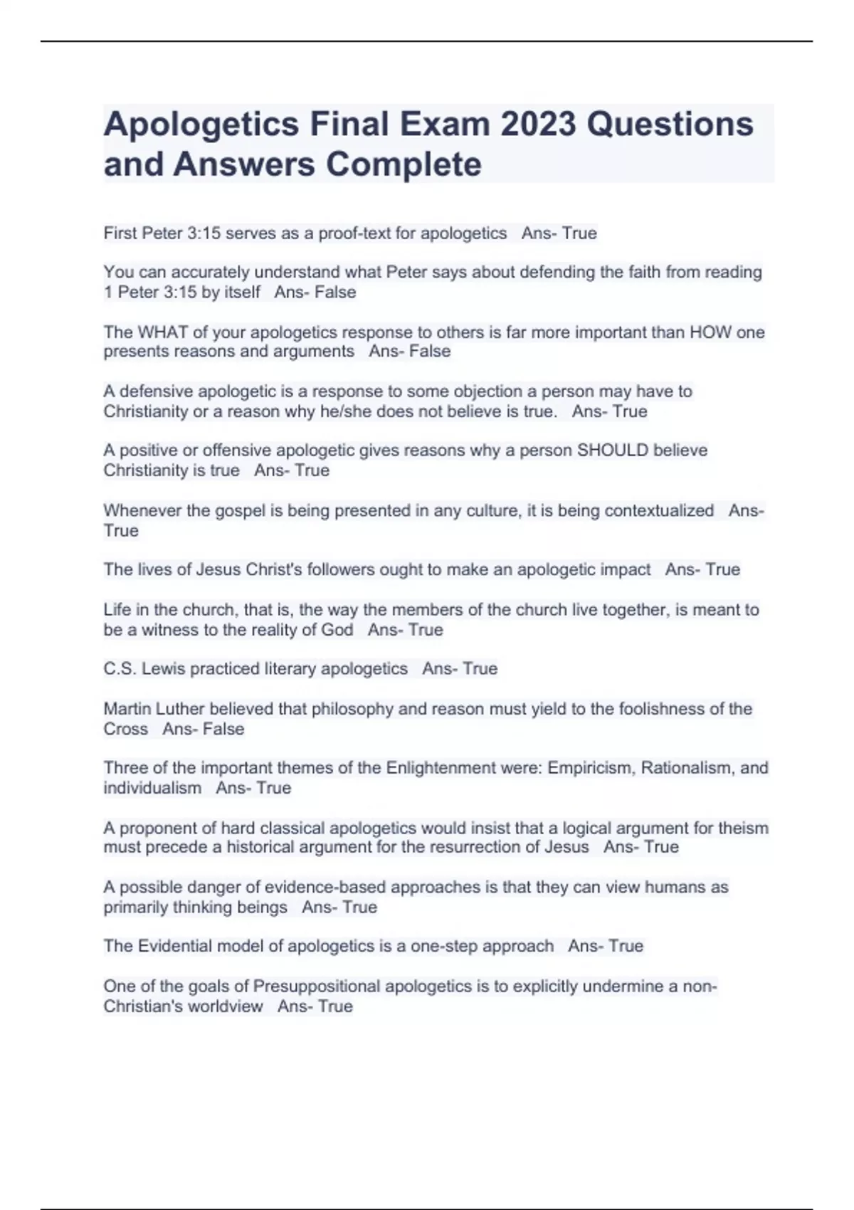 Apologetics Final Exam 2023 Questions and Answers Complete