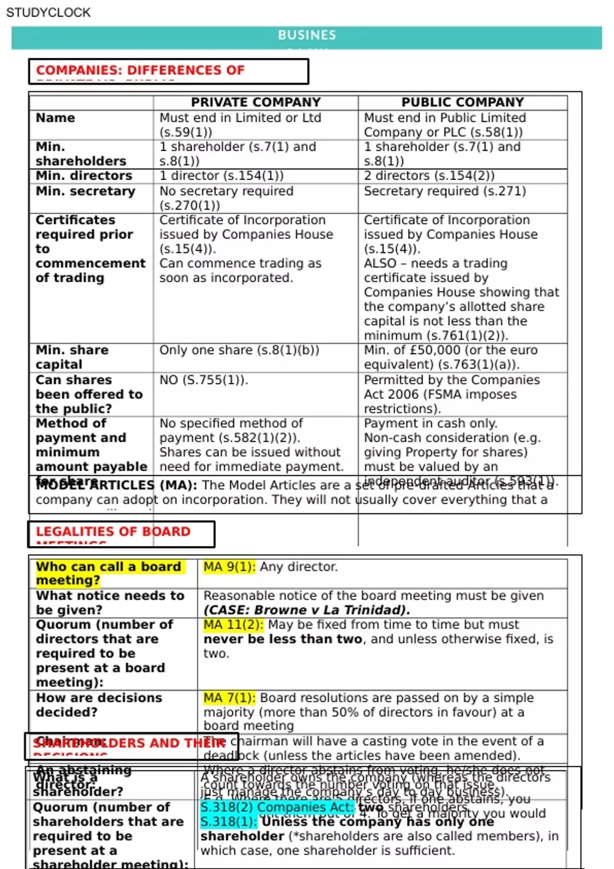 shares AND S.544(1) CA board