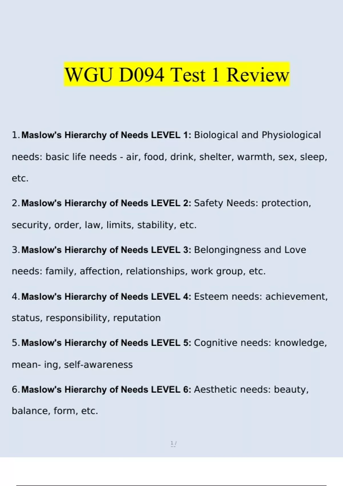WGU D094 Test 1 Review 2023 Complete Solutions Verified
