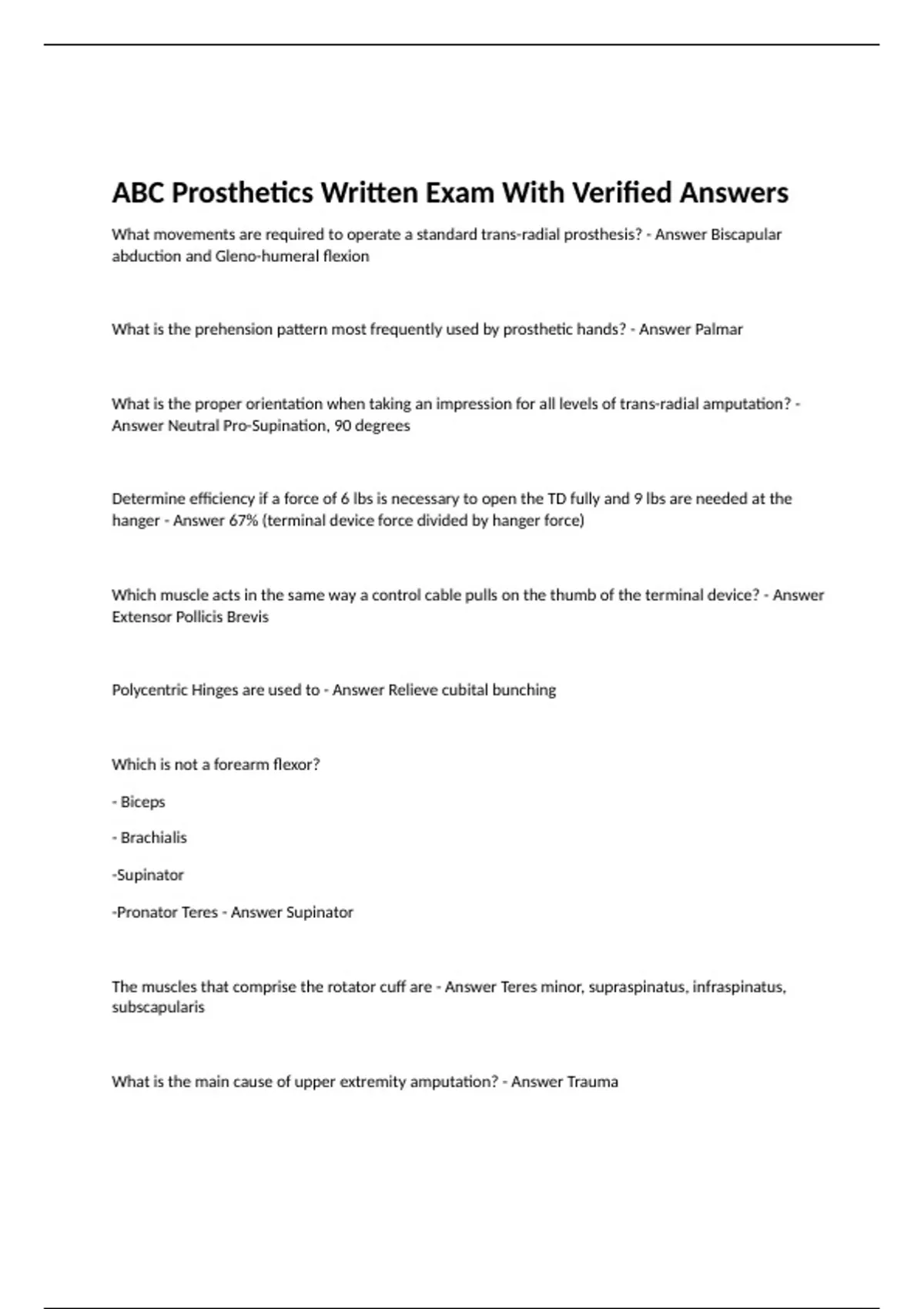 ABC Prosthetics Written Exam With Verified Answers