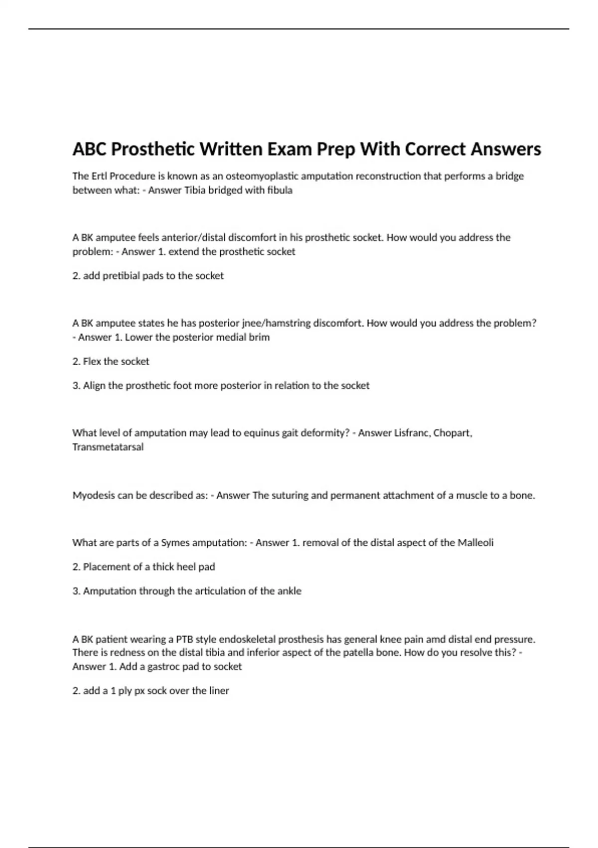 ABC Prosthetic Written Exam Prep With Correct Answers