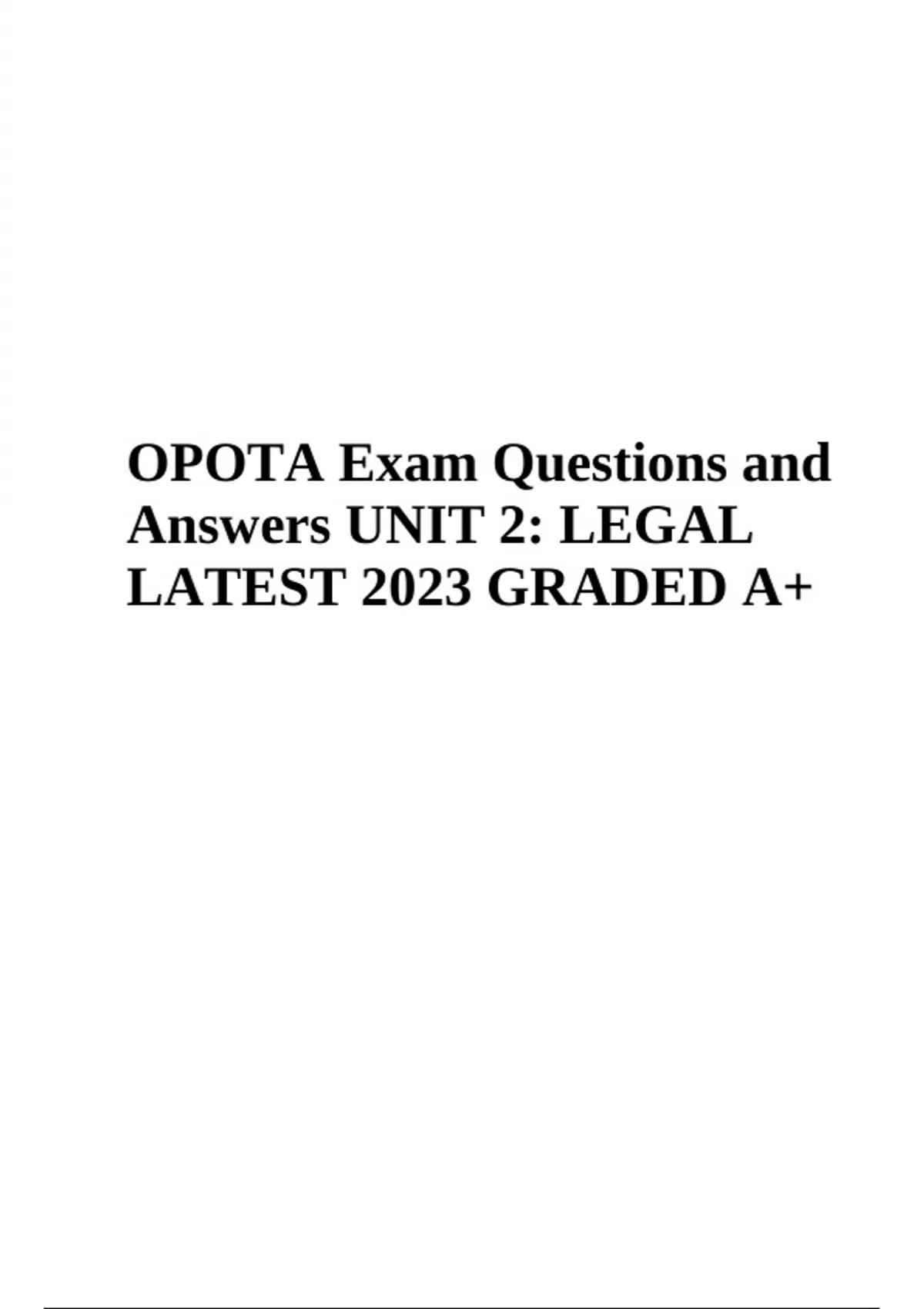 opota exam questions and answers unit 2 legal latest graded 100 2023