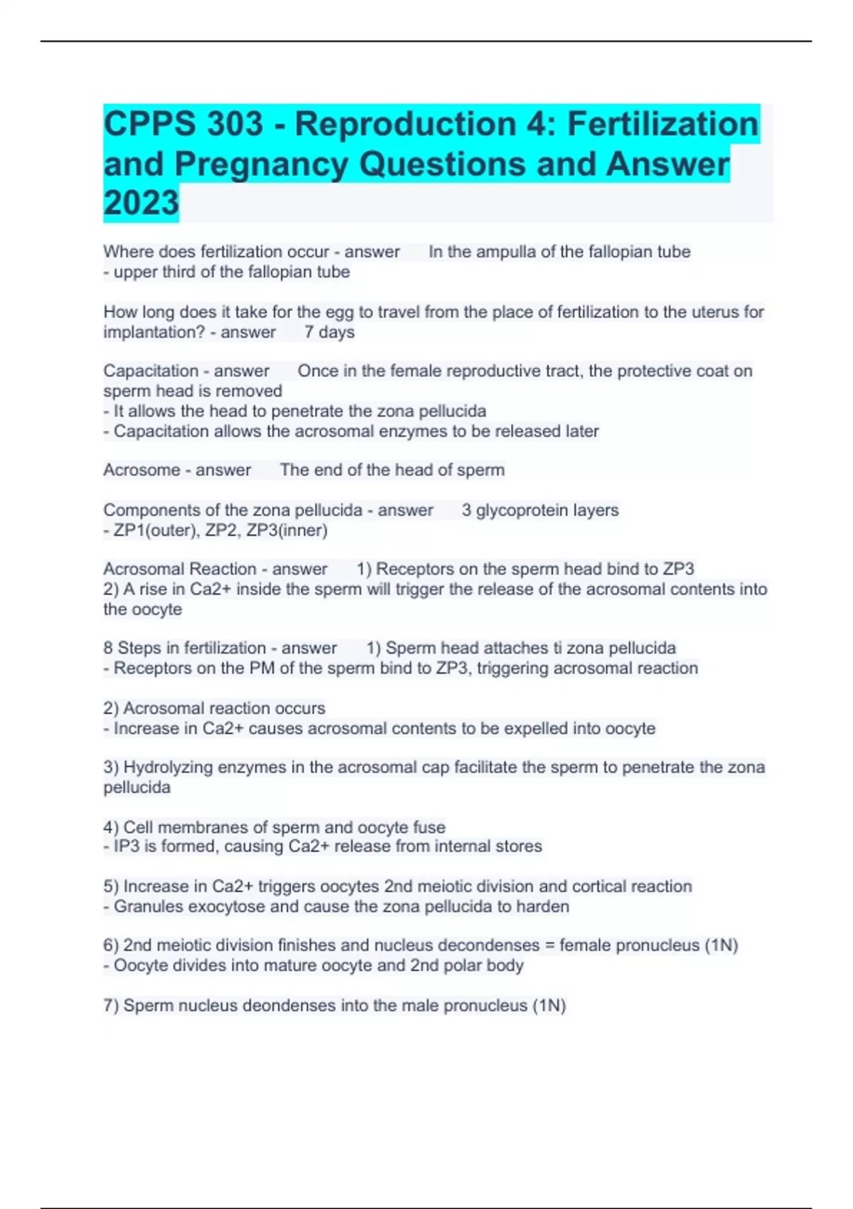 CPPS 303 - Reproduction 4: Fertilization and Pregnancy Questions and Answer 2023