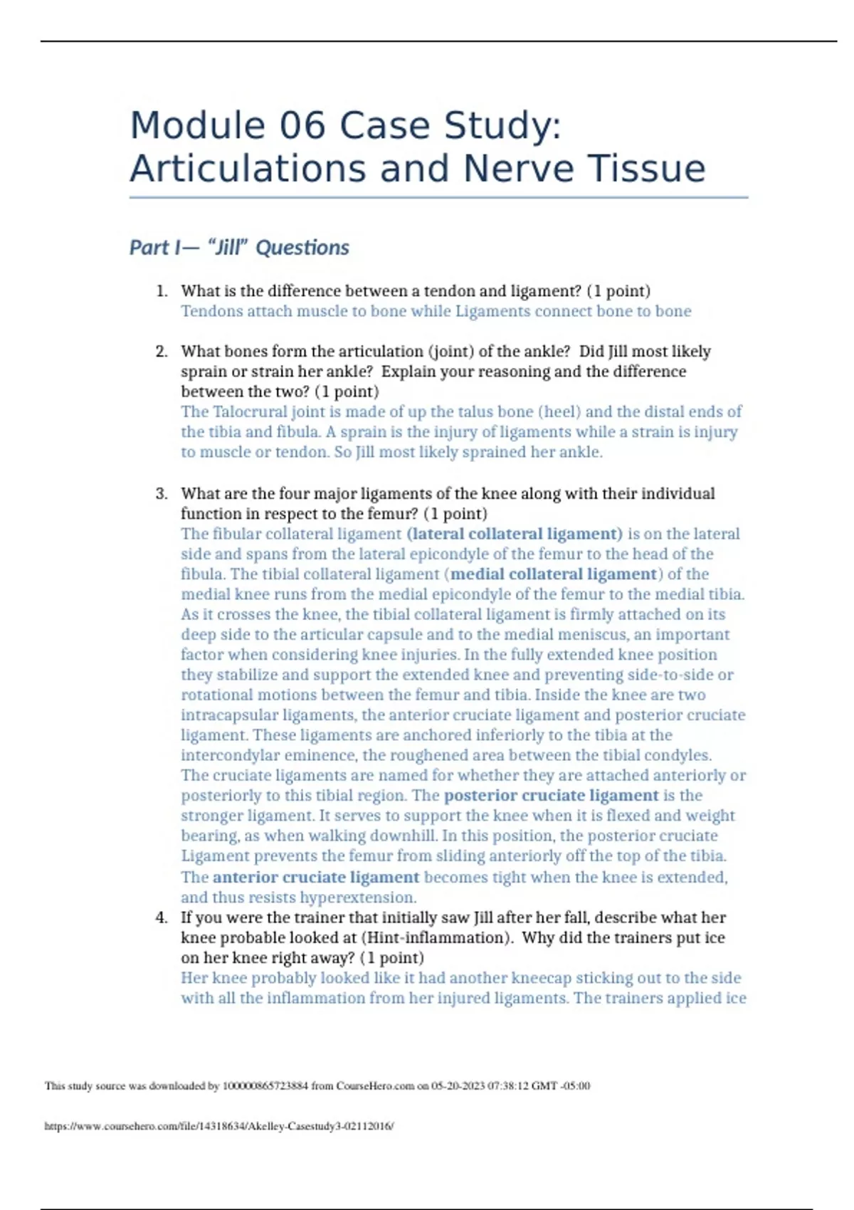 Articulations and Nerve Tissue /Module 06 Case Study:Articulations and Nerve Tissue
