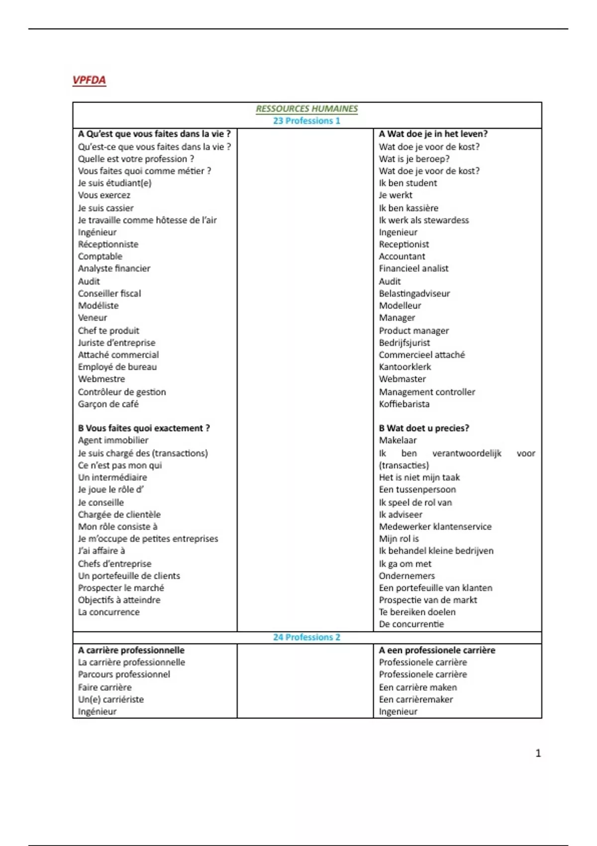 Vocabulaire lijst - Ressources humaines & Marketing (FRA-NED)