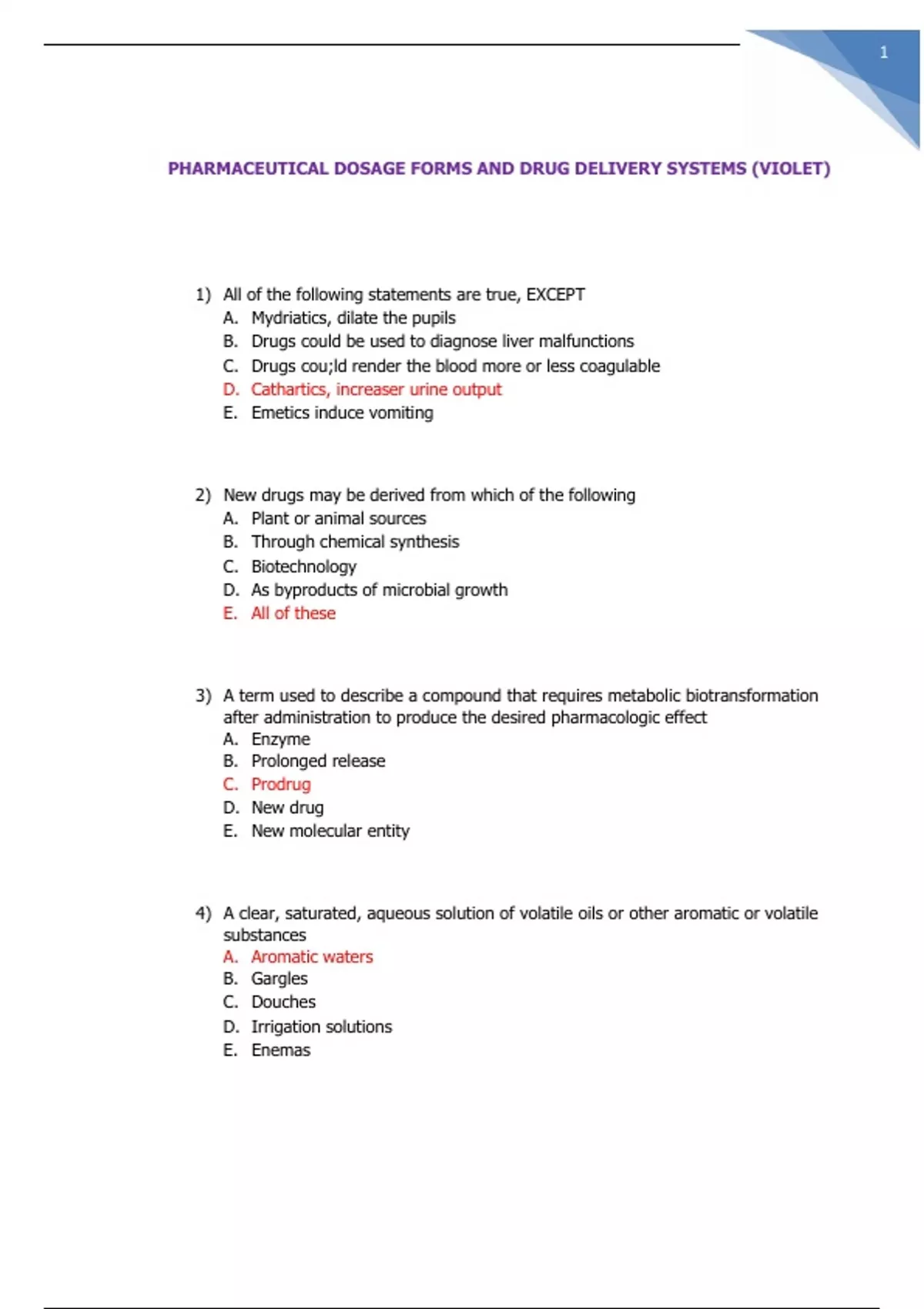 DOSAGE FORM PACOP COMPILED-PHARMACEUTICAL DOSAGE FORMS AND DRUG DELIVERY SYSTEMS (VIOLET) LATEST 2023/2024