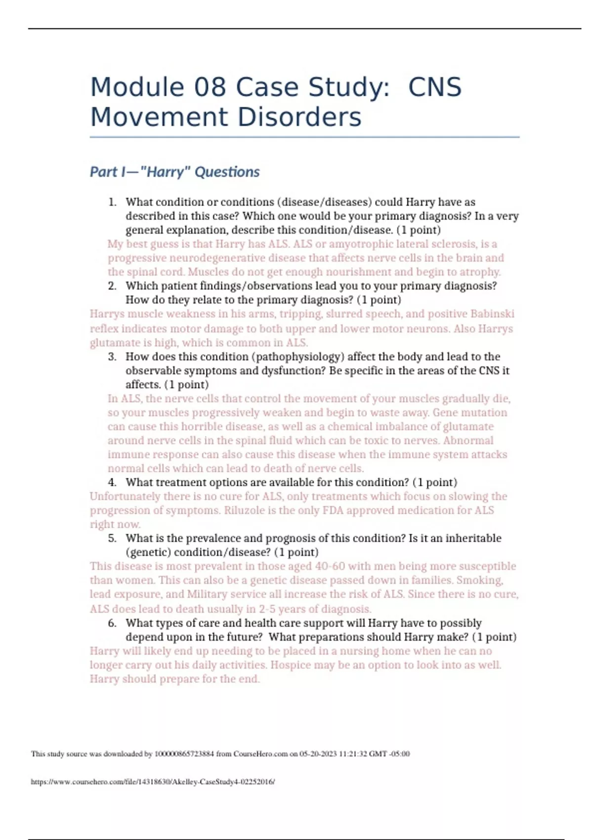 Module 08 Case Study: CNS Movement Disorders 100% Correct 2023