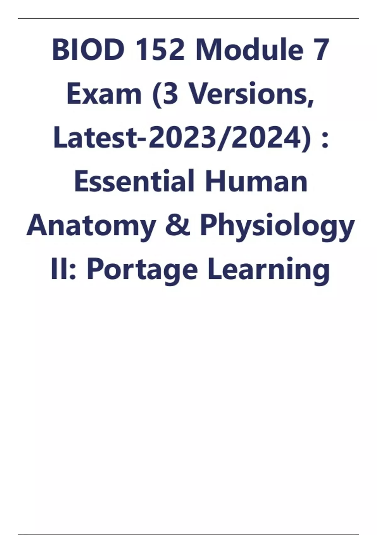 BIOD 152 Module 7 Exam (3 Versions, Latest-2023/2024) : Essential Human Anatomy & Physiology II: Portage Learning