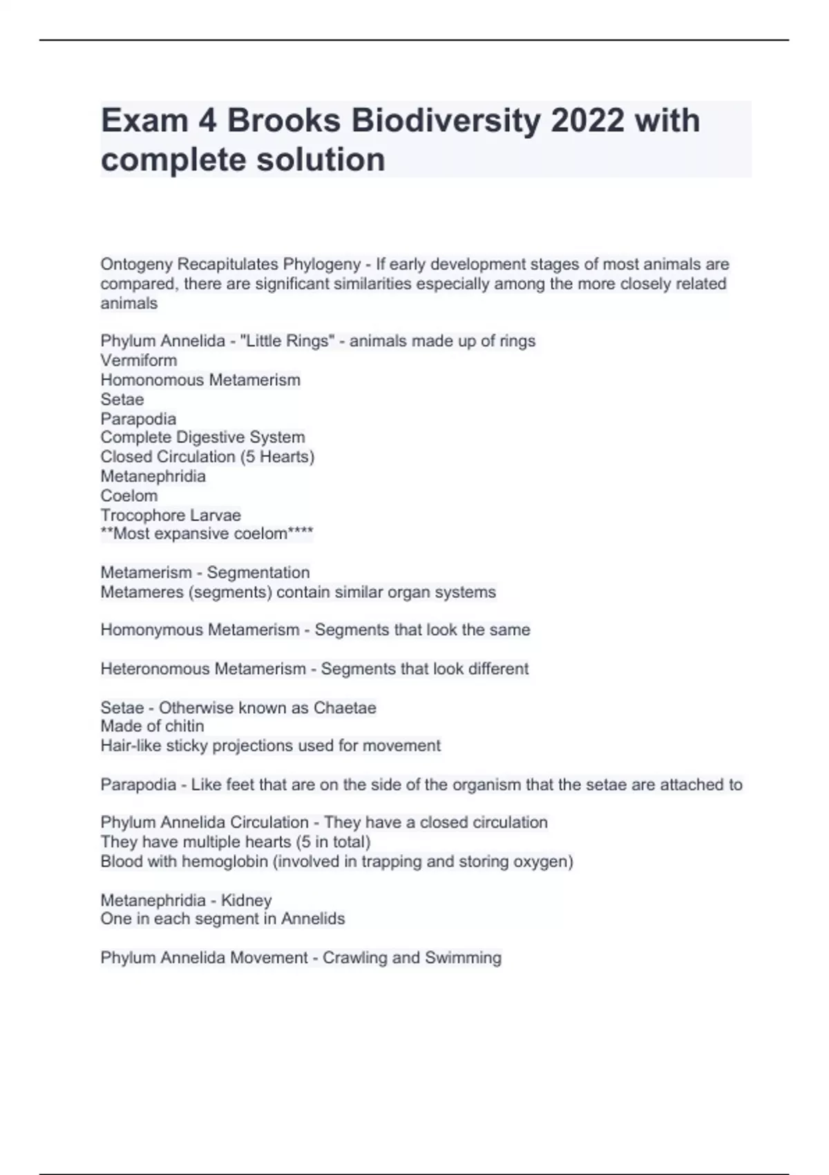 Exam 4 Brooks Biodiversity 2022 with complete solution