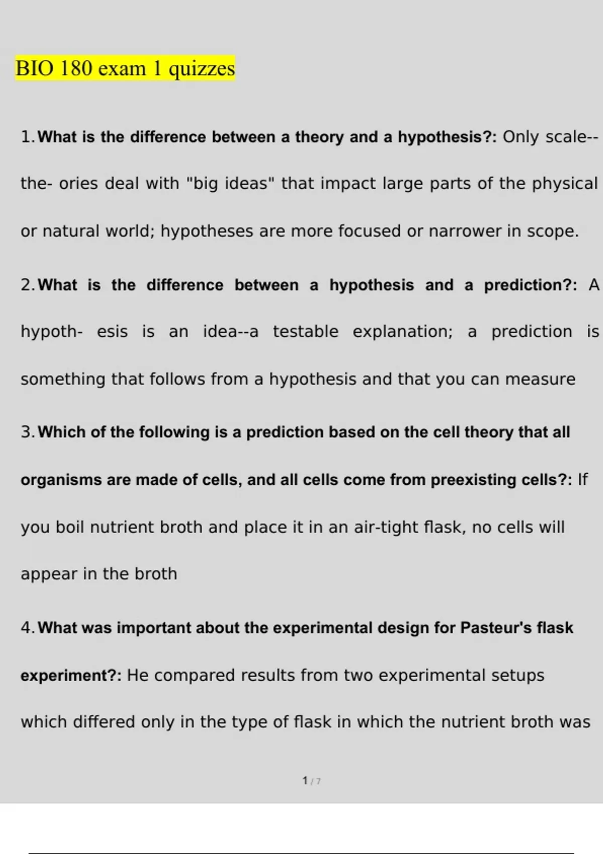 bio 180 exam 1 EXAM Questions and Answers (2022/2023) (Verified Answers)