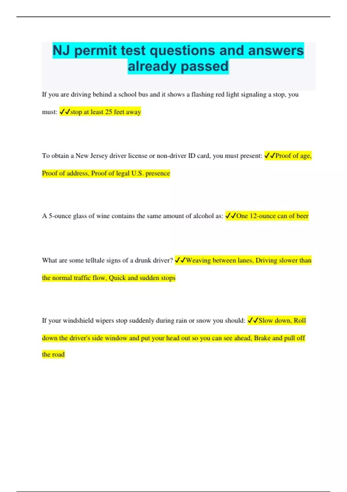 NJ permit test questions and answers already passed