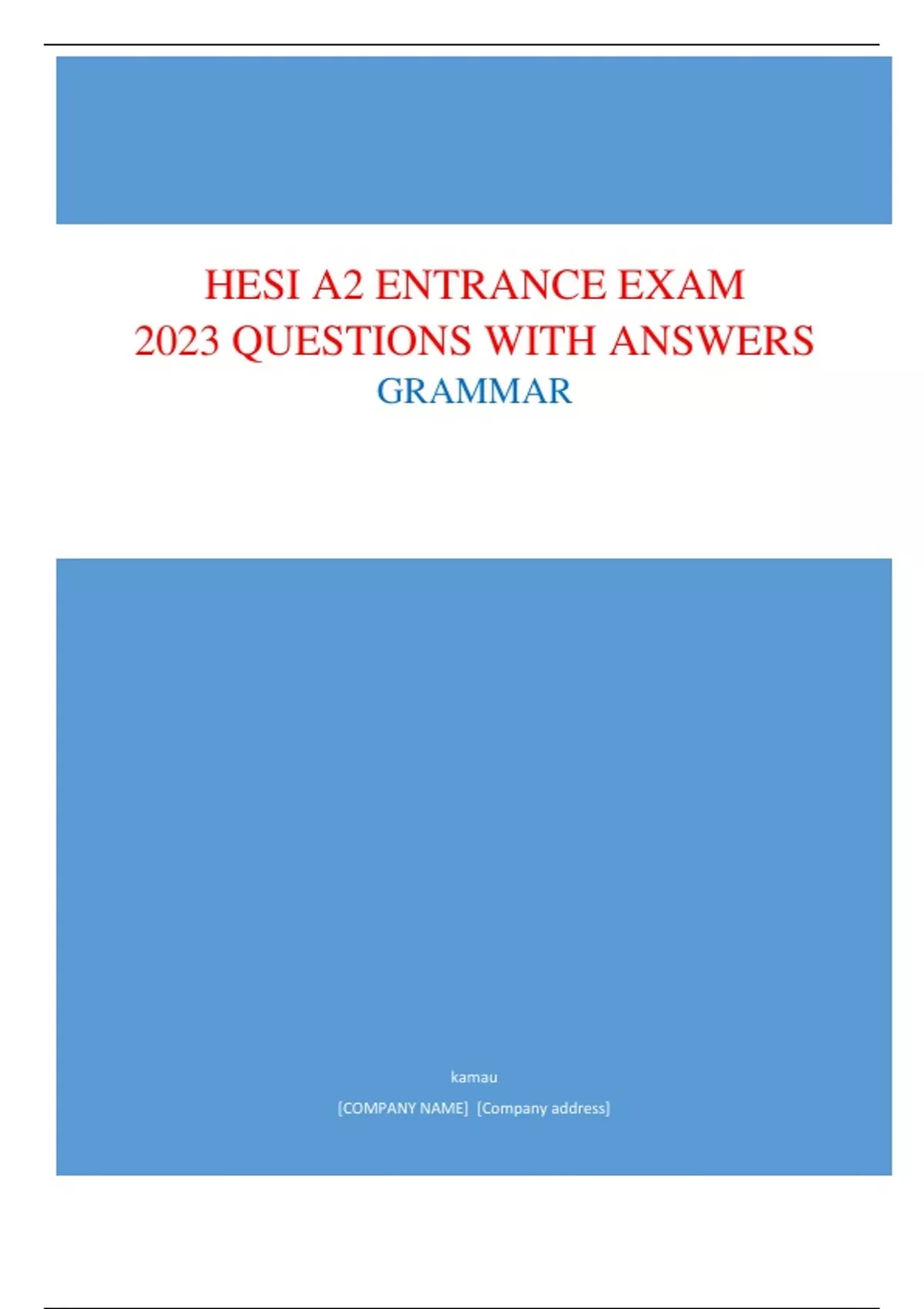 HESI A2 GRAMMAR ENTRANCE EXAM - QUESTIONS WITH ANSWERS 2023
