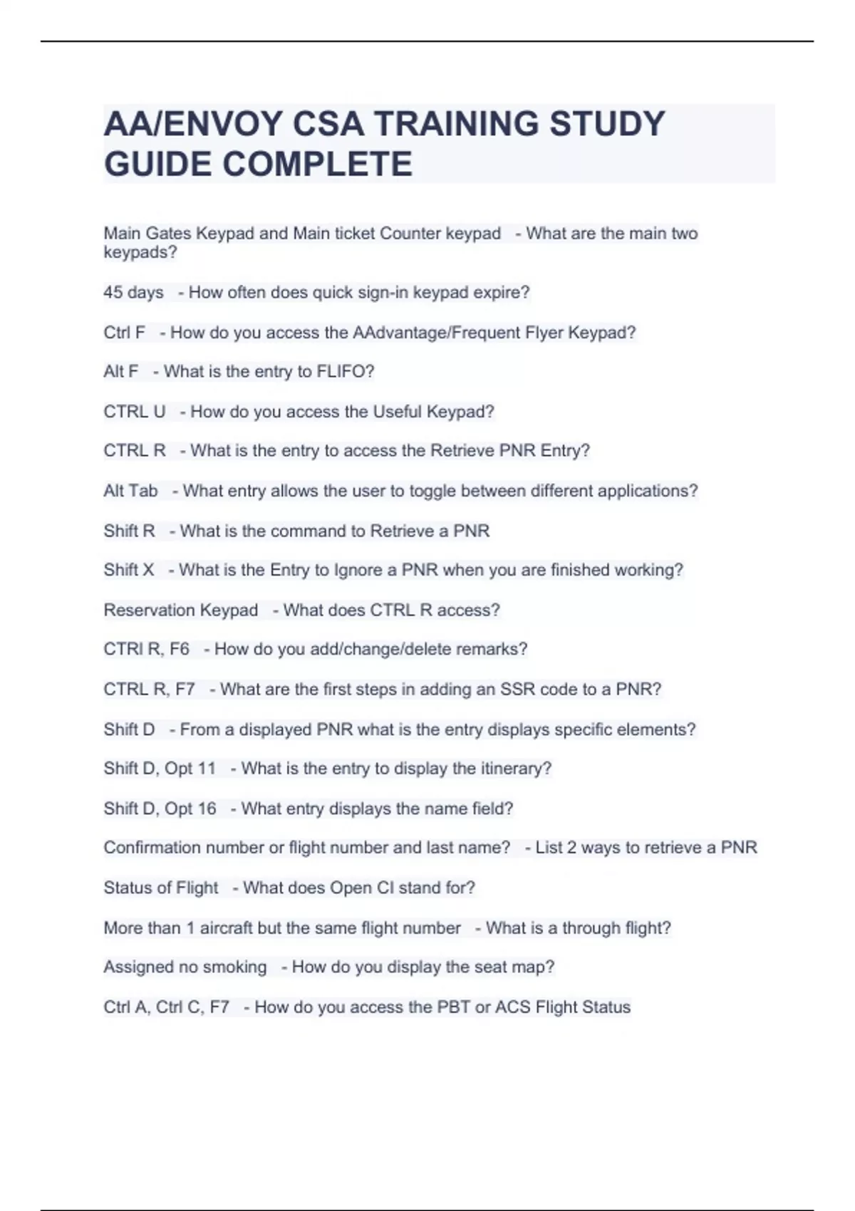 AA/ENVOY CSA TRAINING STUDY GUIDE COMPLETE