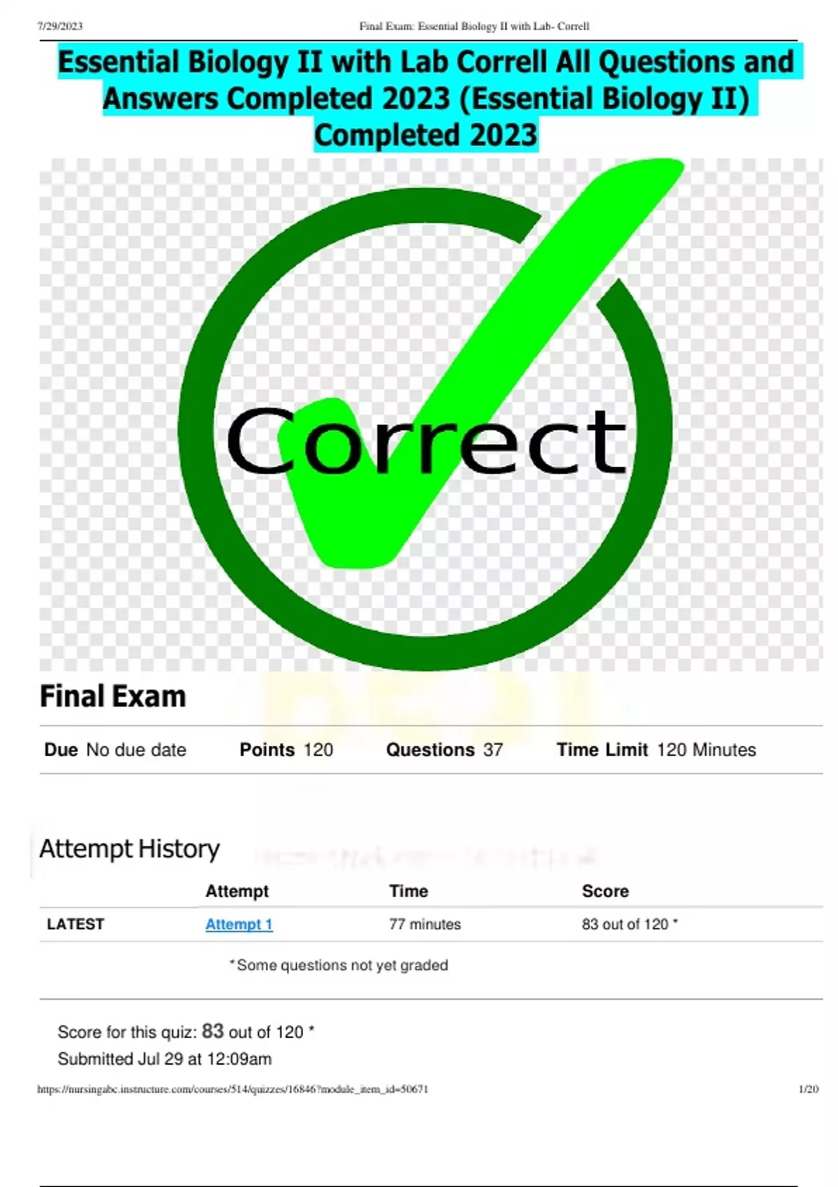 essential biology ii with lab correll all questions and answers completed 2023 essential biology ii completed 2023