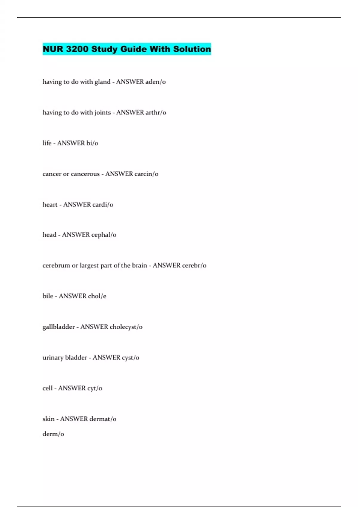 nur 3200 study guide with solution