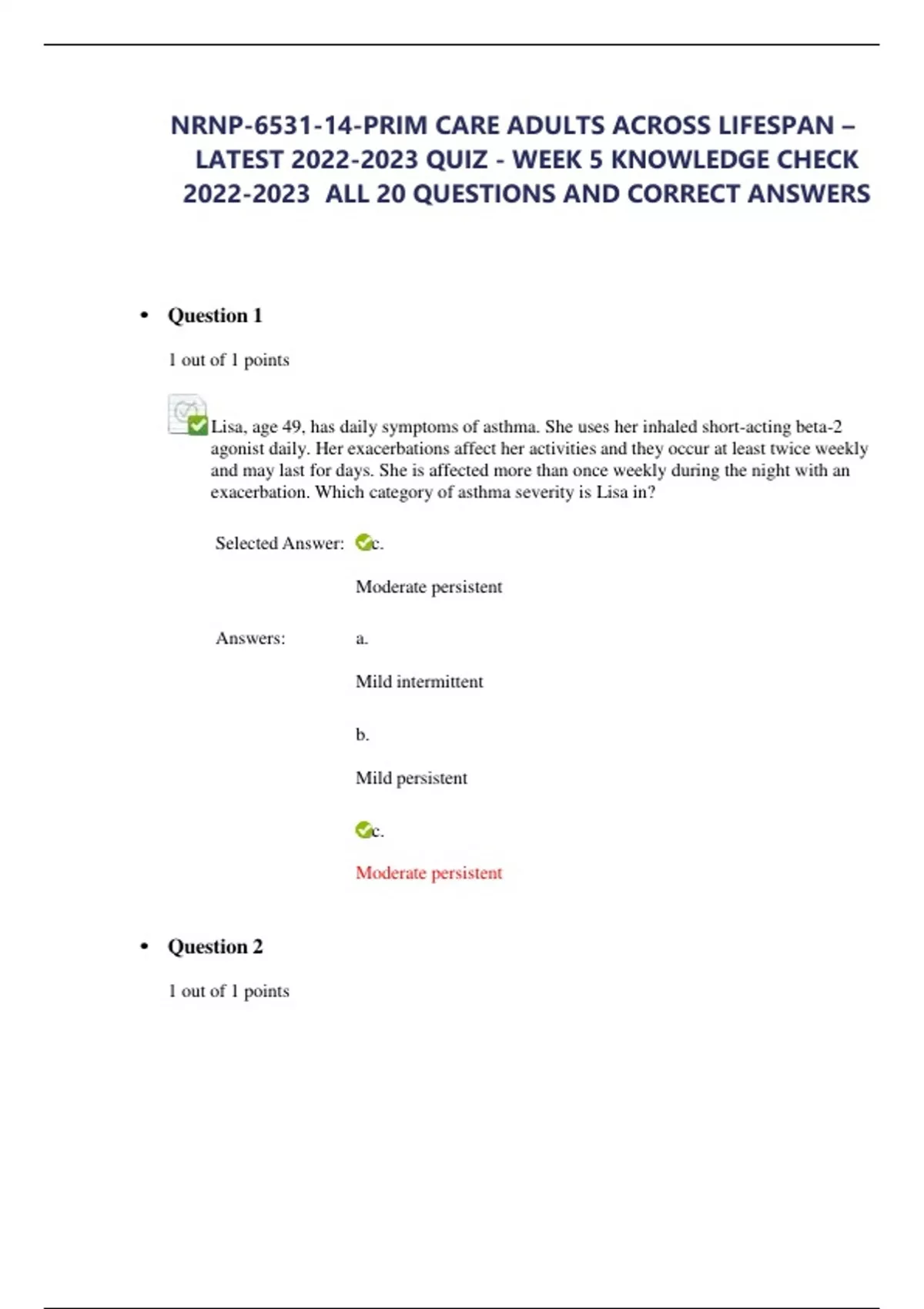nrnp 6531 14 prim care adults across lifespan – latest 2022 2023 quiz week 5 knowledge check 2022 2023 all 20 questions and correct answers