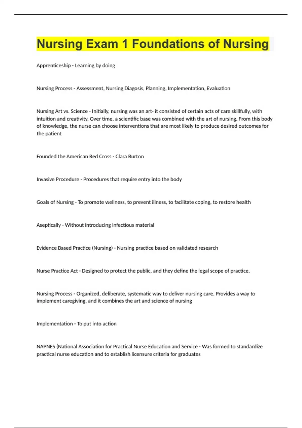 Nursing Exam 1 Foundations /Nursing Exam 1 Foundations