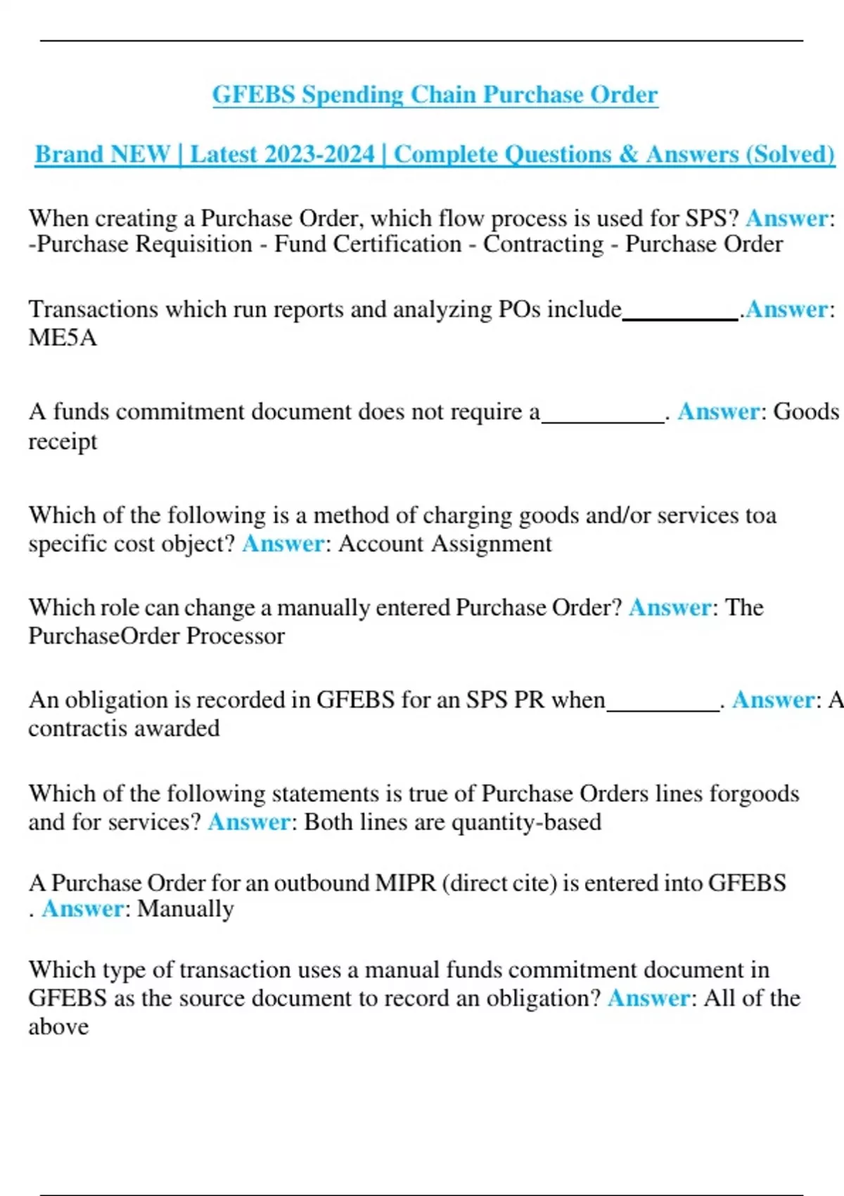 GFEBS Spending Chain Purchase Order Brand NEW | Latest | Complete Questions & Answers (Solved)