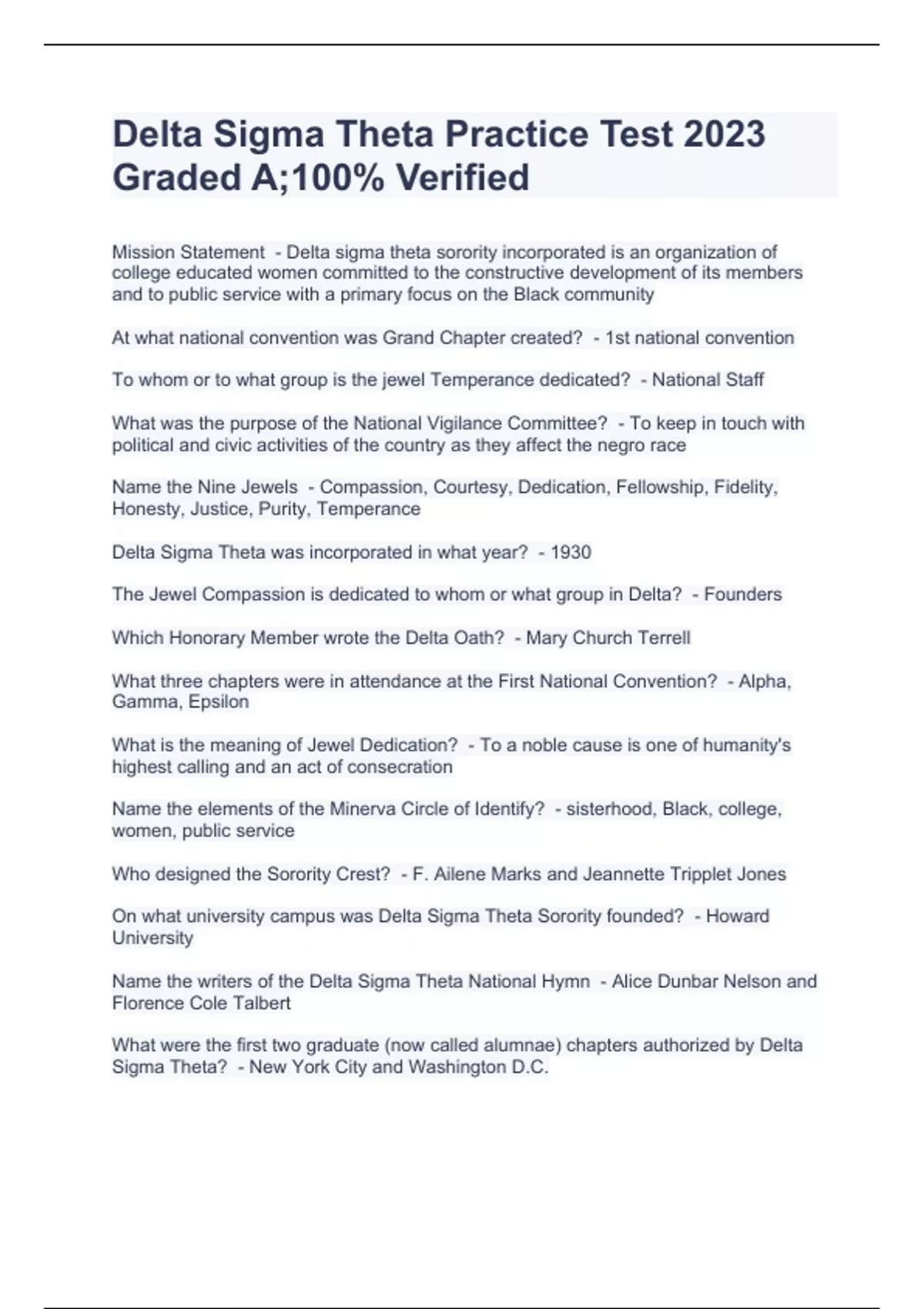 Delta Sigma Theta Practice Test 2023 Graded A;100% Verified
