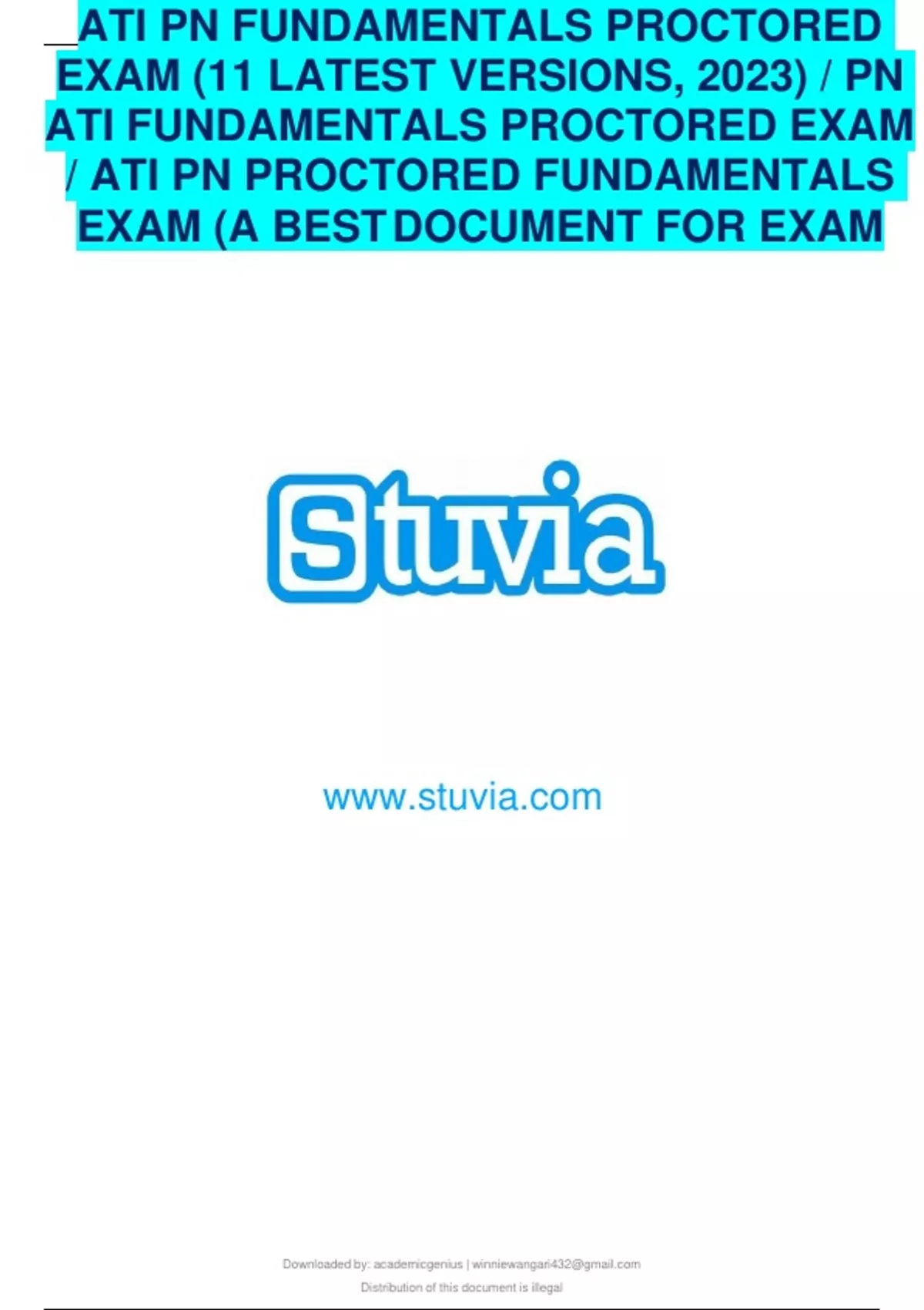 ATI PN FUNDAMENTALS PROCTORED EXAM (11 LATEST VERSIONS, 2023) / PN ATI FUNDAMENTALS PROCTORED EXAM / ATI PN PROCTORED FUNDAMENTALS EXAM (A BEST DOCUMENT FOR EXAM