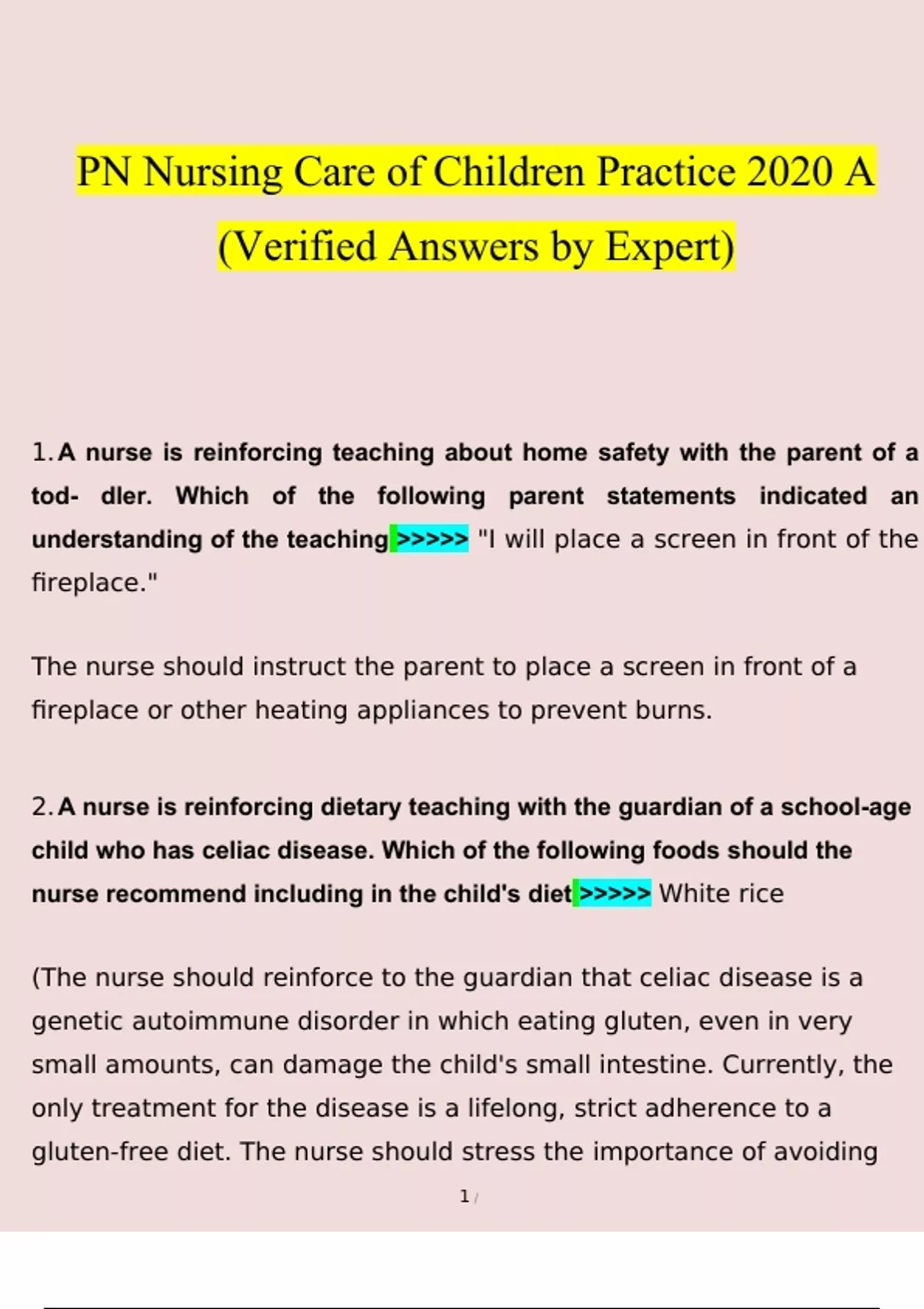 PN Nursing Care of Children Practice 2020 A Questions With Verified Answers