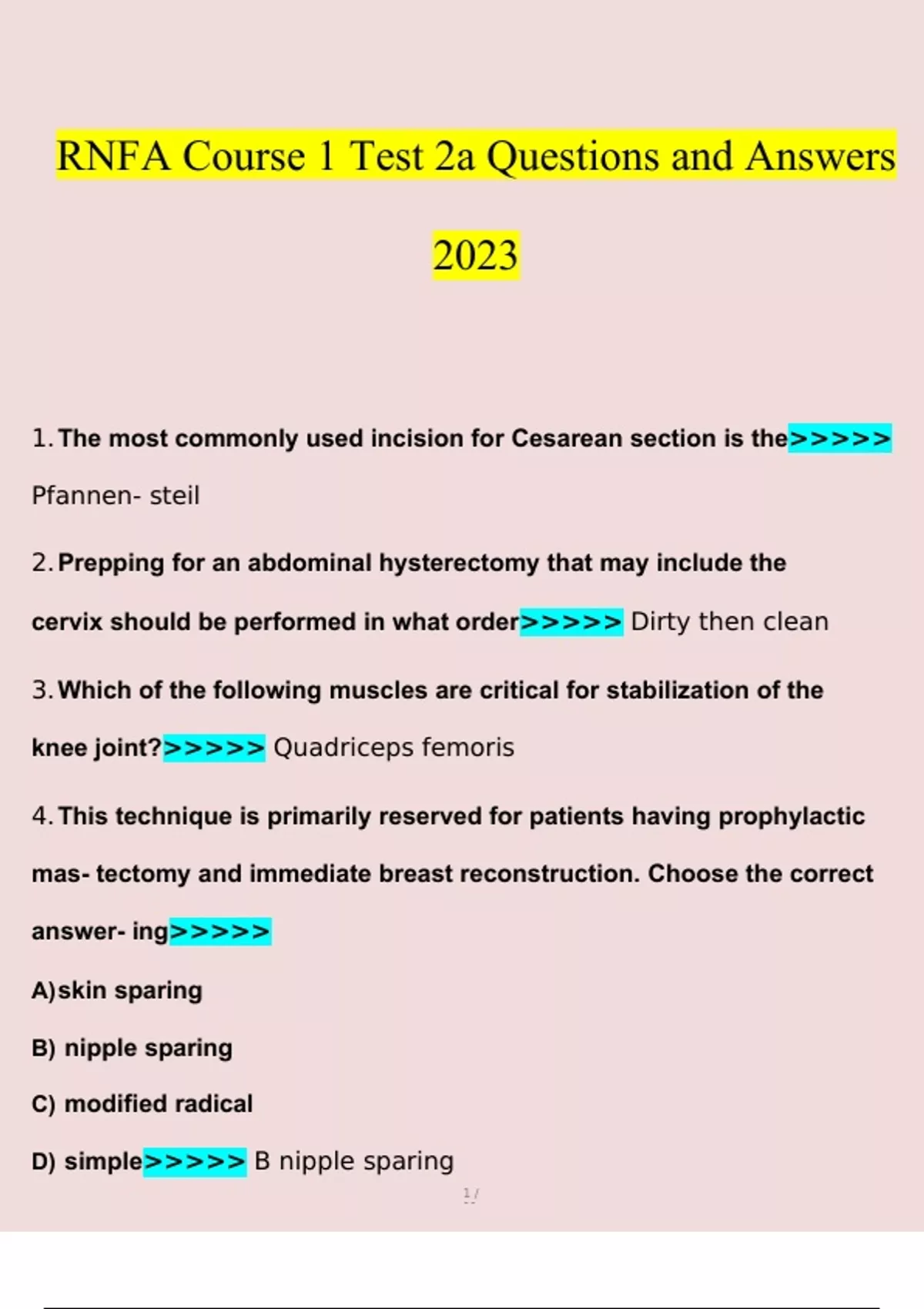 RNFA Course 1 Test 2a Questions With Verified Answers
