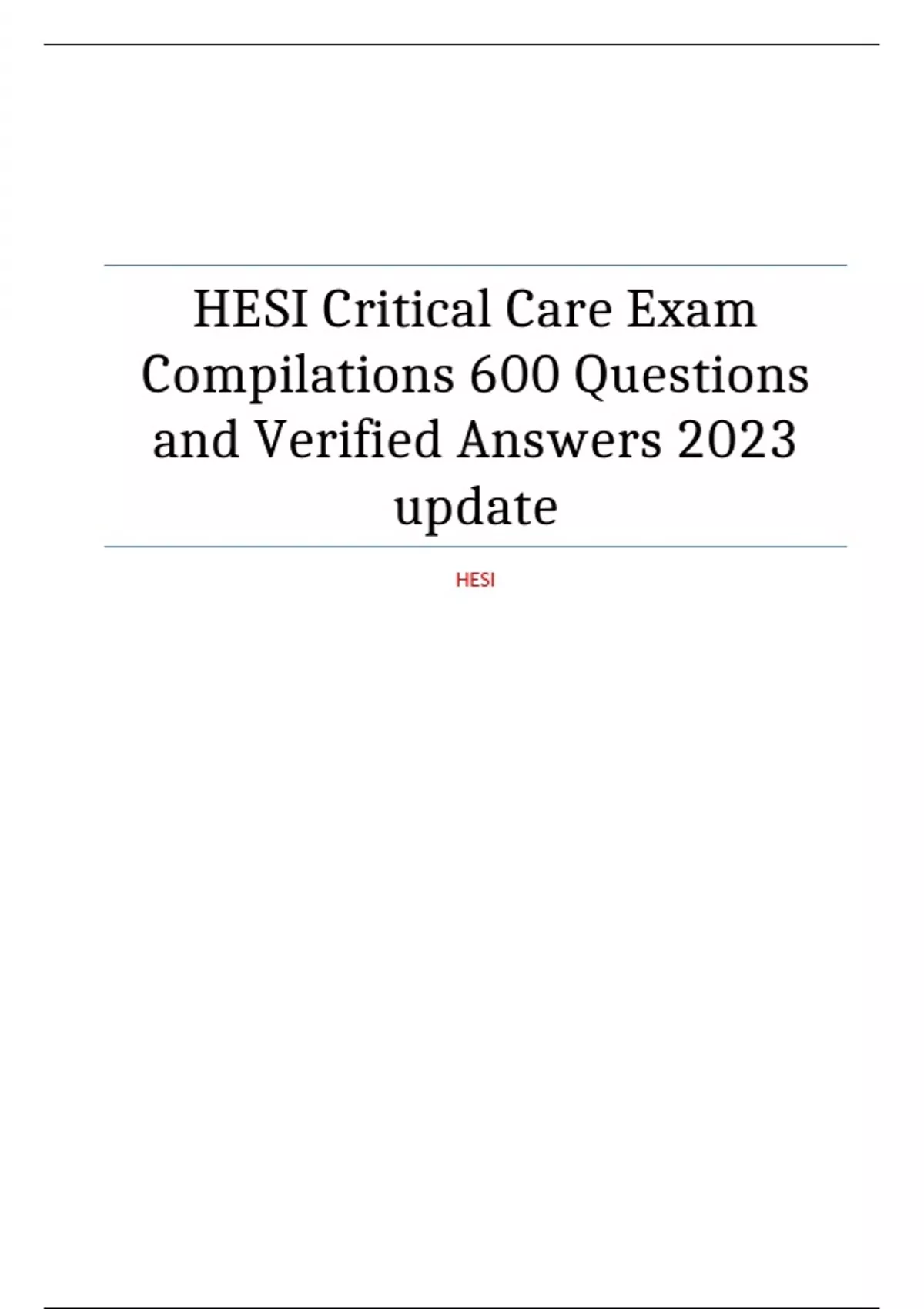 HESI Critical Care Exam Compilations 600 Questions and Verified Answers 2023 update