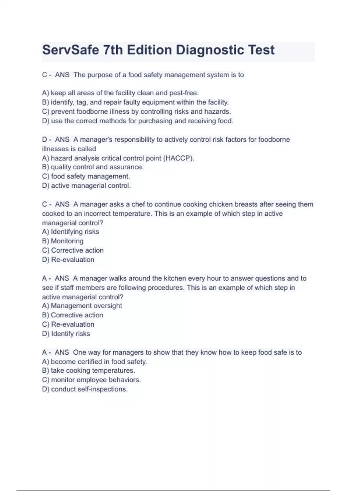 Summary ServSafe 7th Edition Diagnostic Test> 80-question diagnostic test and answer key (all correct updated .)