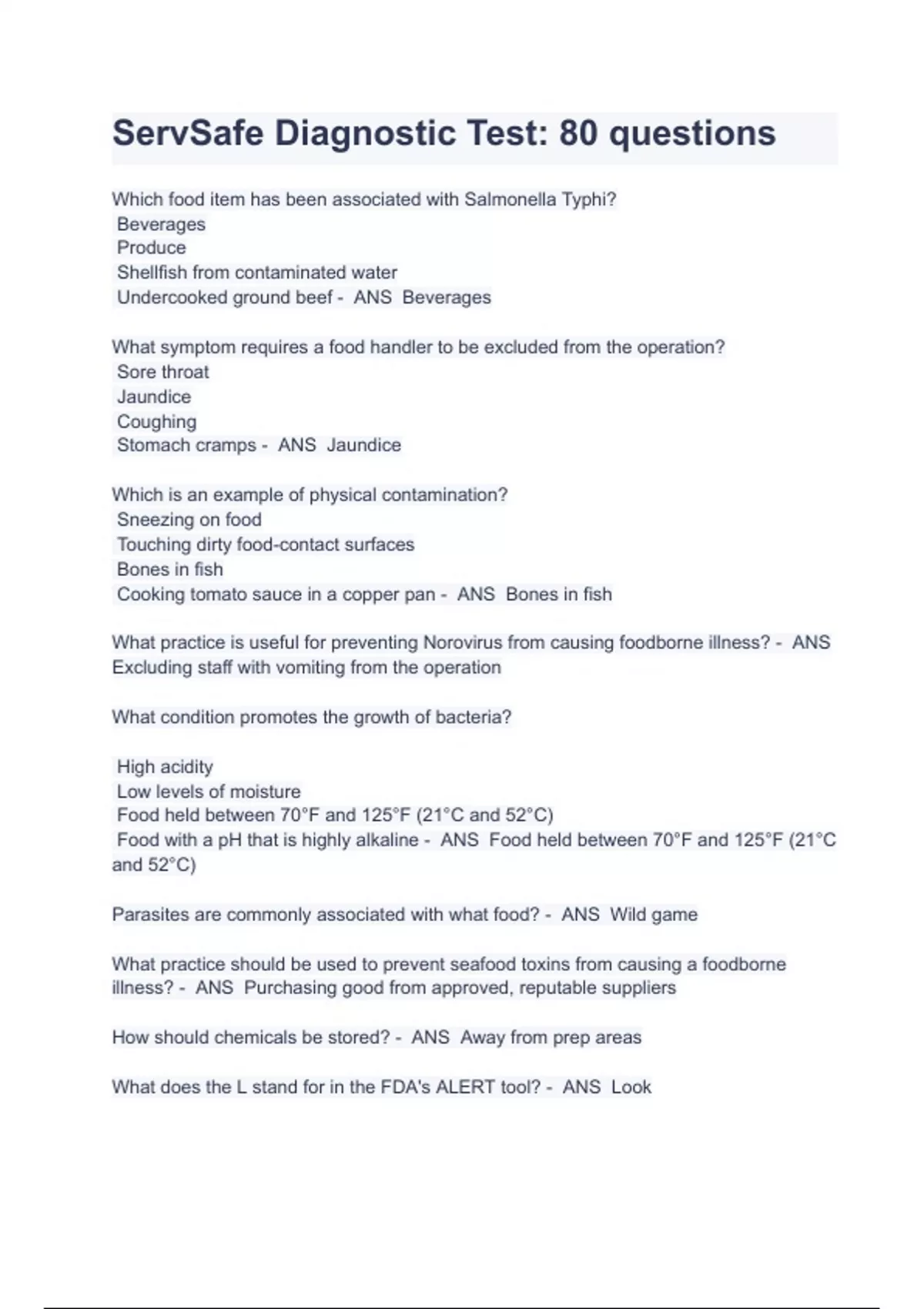servsafe diagnostic test 80 questions complete with answers 100 verified