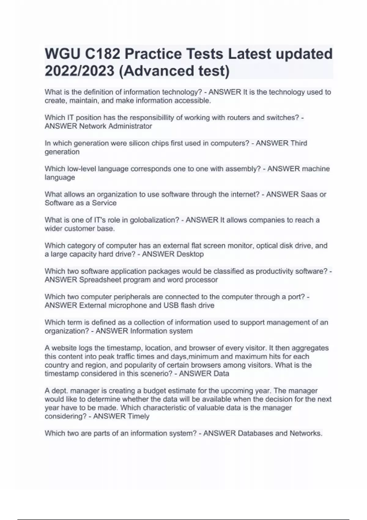 - WGU C182 Practice Tests