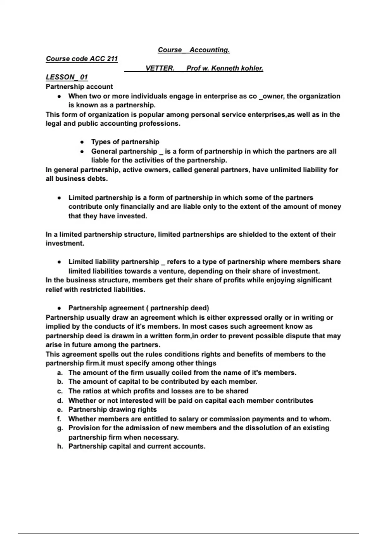 - Class notes