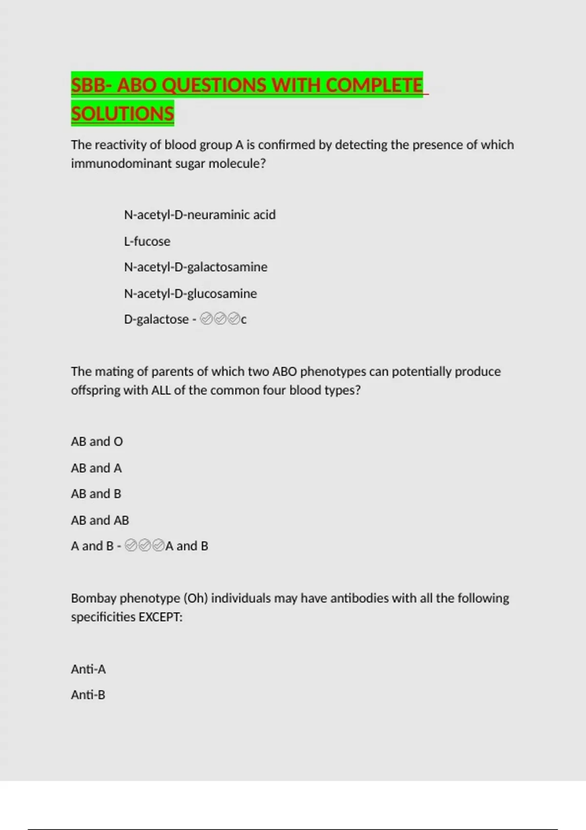 SBB- ABO QUESTIONS WITH COMPLETE SOLUTIONS