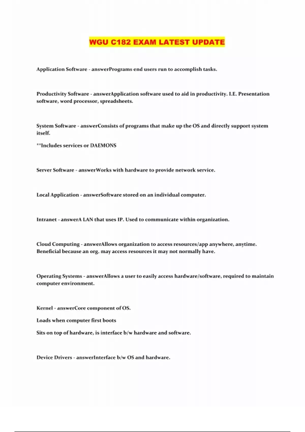 WGU C182 EXAM most reliable for best scores