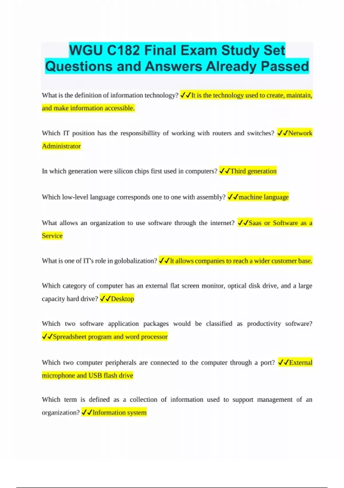 WGU C182 Final Exam Study Set most reliable for best scores