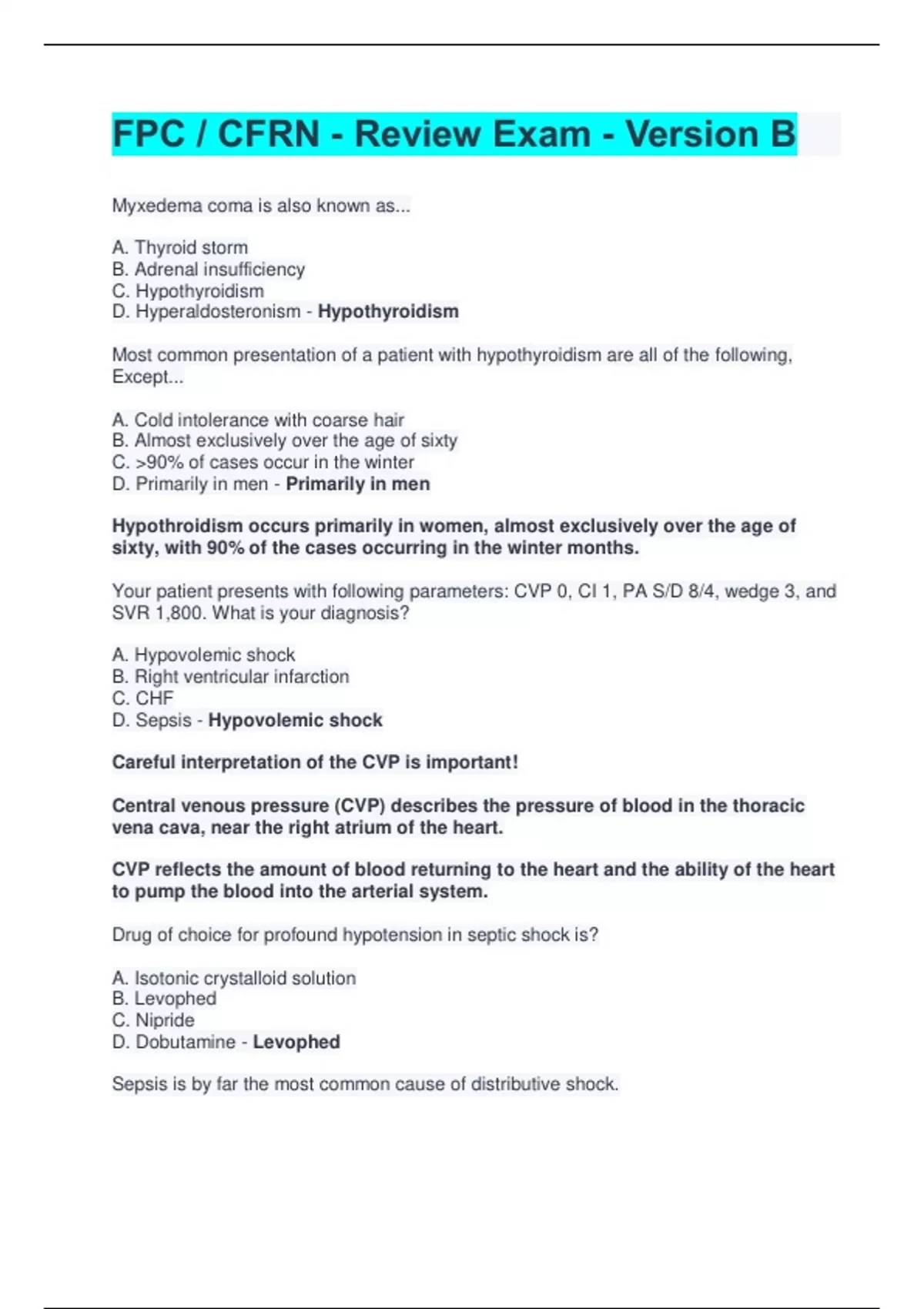 FPC / CFRN - Review Exam Best Version With Quality Answers.