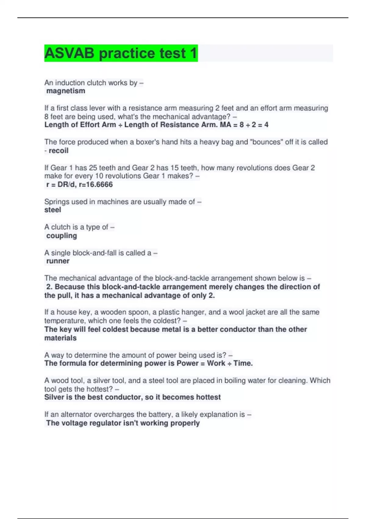 asvab practice test 1 an induction clutch works by – magnetism if a first class lever with a resistance arm measuring 2 feet and an effort arm measu