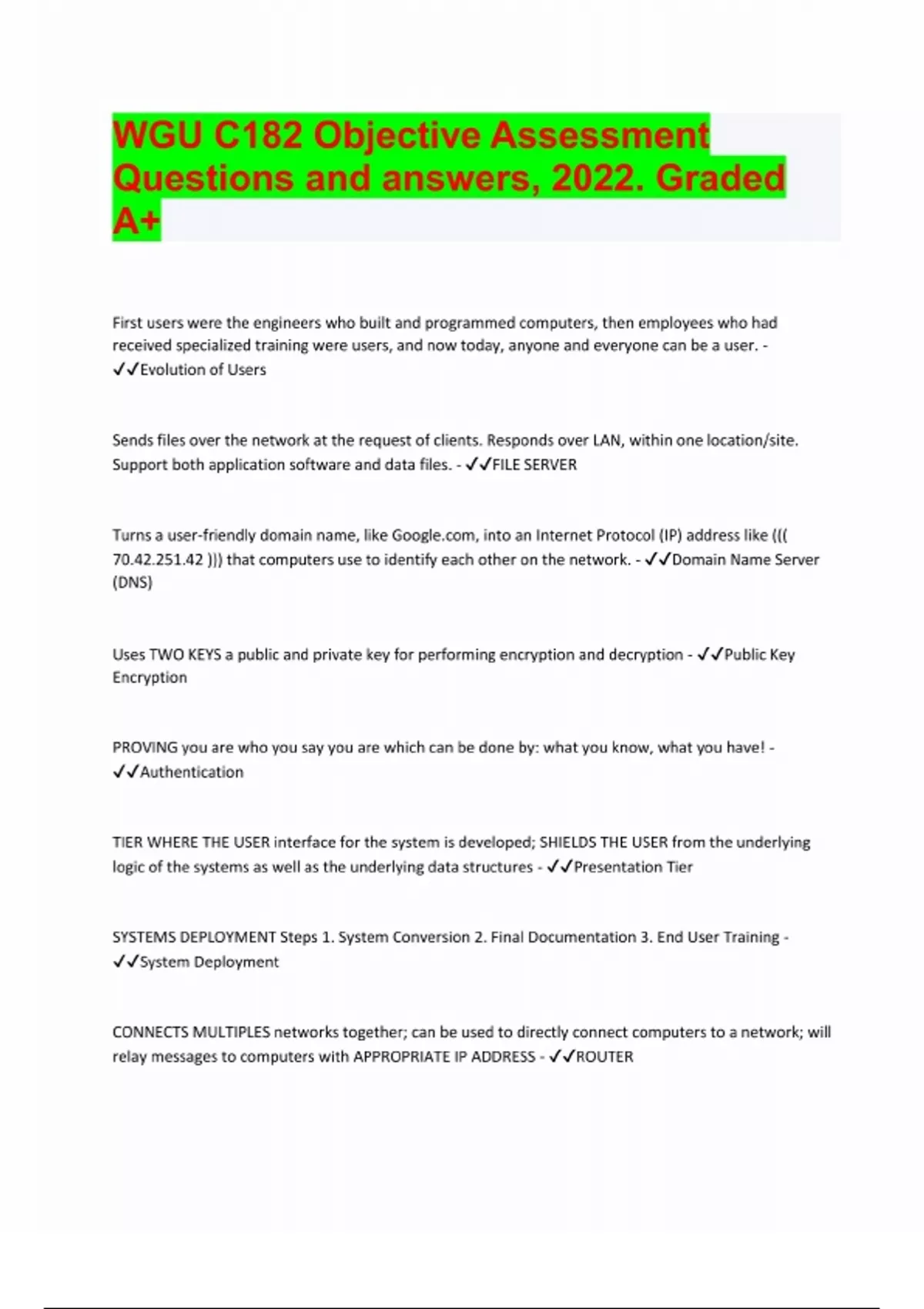 WGU C182 Objective Assessment most reliable for best scores