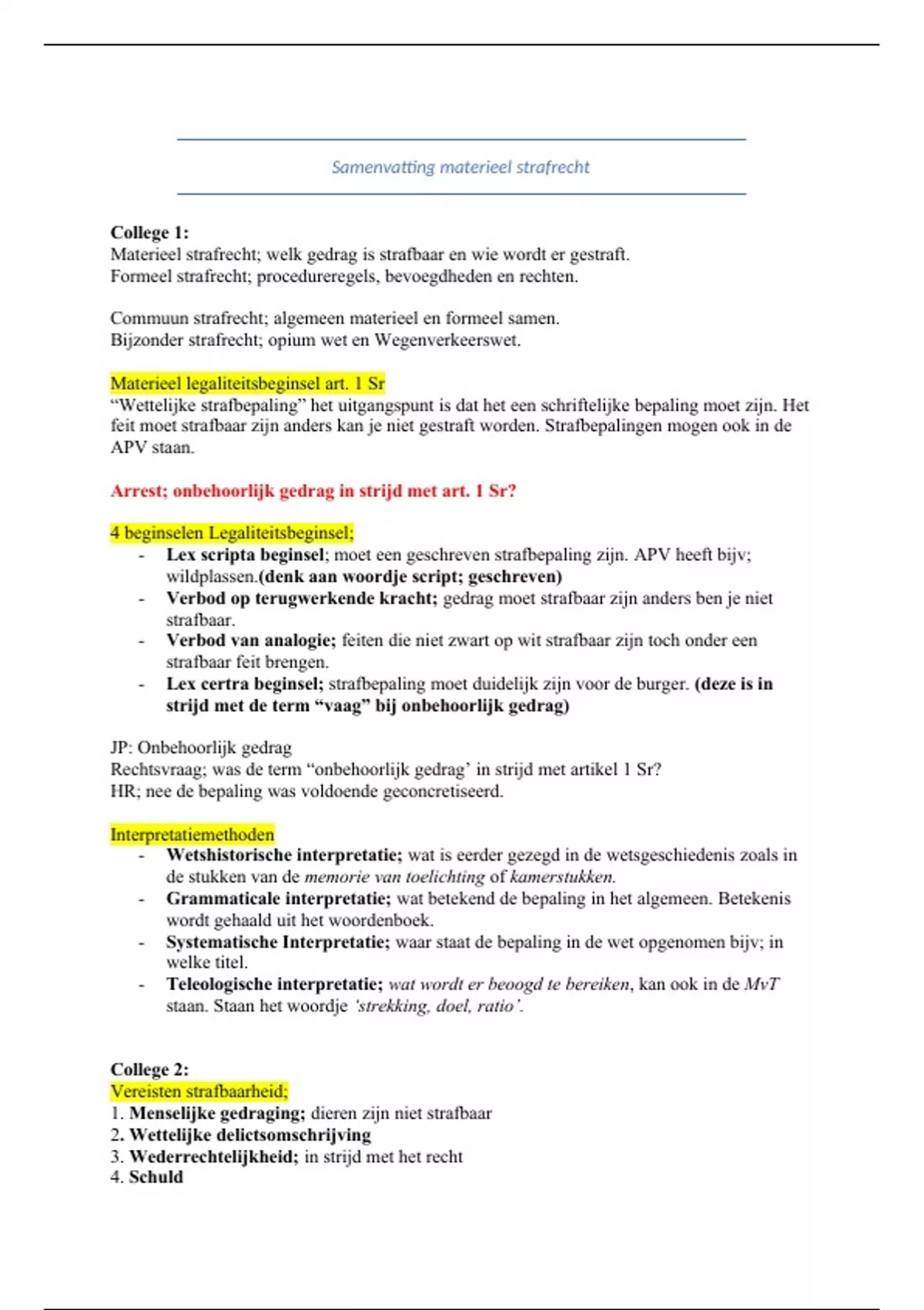 - Lex certra beginsel; strafbepaling moet duidelijk zijn voor de burger. (deze is in