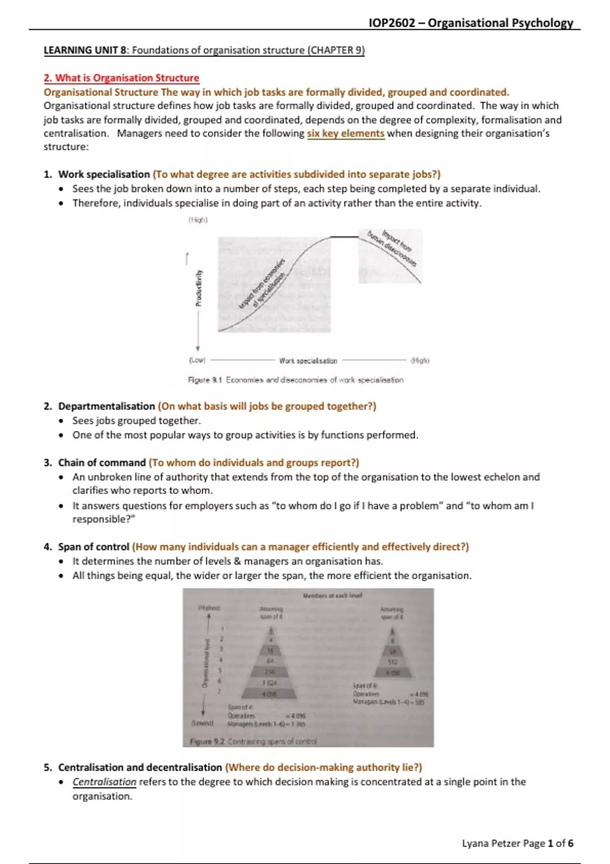 LEARNING UNIT 8: Foundations of organisation structure (CHAPTER 9)