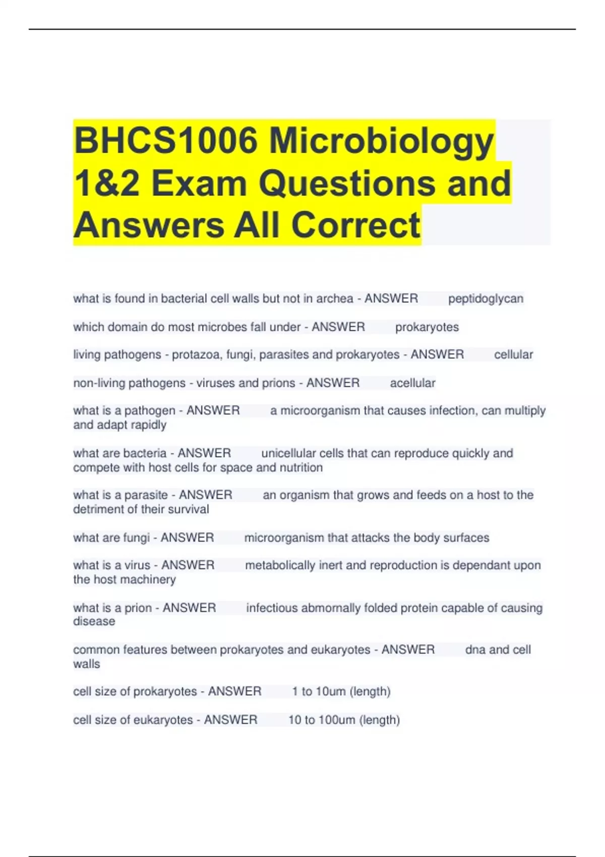 BHCS1006 Microbiology 1&2 Exam Questions and Answers All Correct