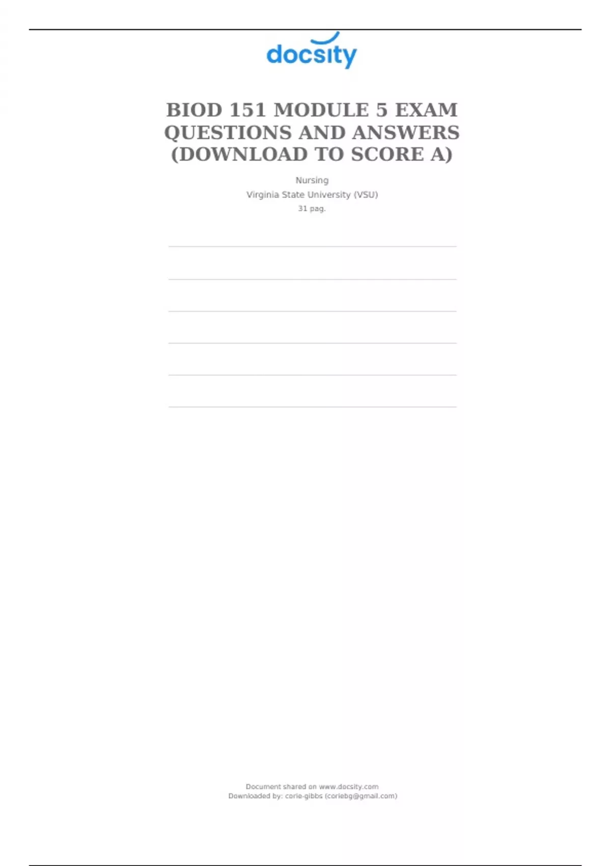 BIOD 151 MODULE 5 EXAM QUESTIONS AND ANSWERS (DOWNLOAD TO SCORE A)