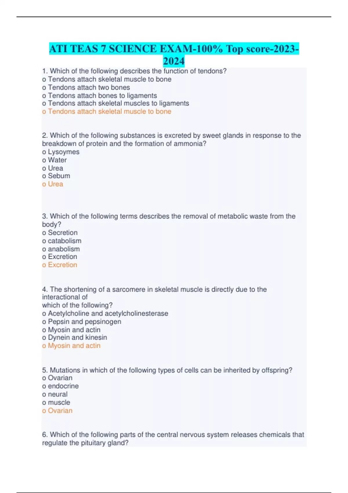 ATI TEAS 7 SCIENCE EXAM-100% Top score-