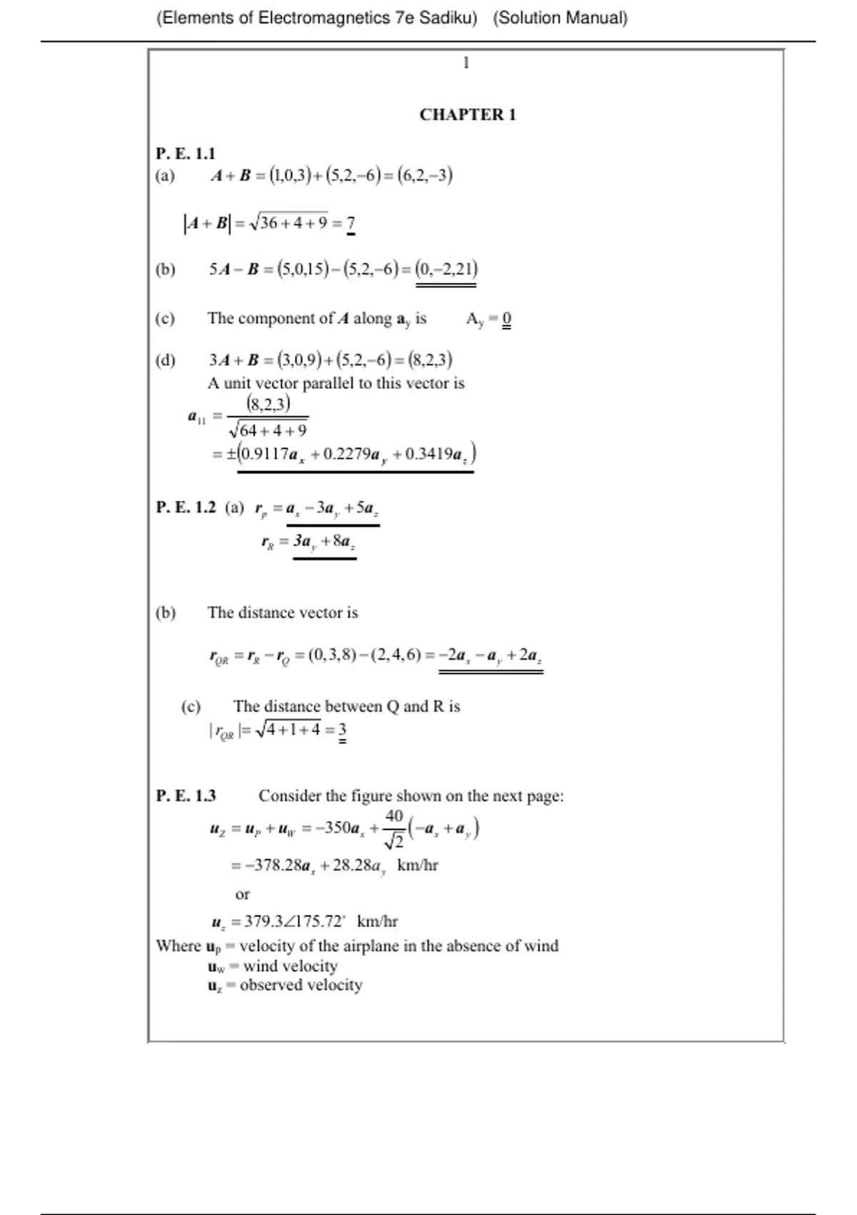 u Where up = velocity of the airplane in the absence of wind uw = wind velocity uz = observed velocity(Elements of Electromagnetics 7e Sadiku) (Solution Manual) 2 P. E. 1.4 Using the dot product, cosABAB