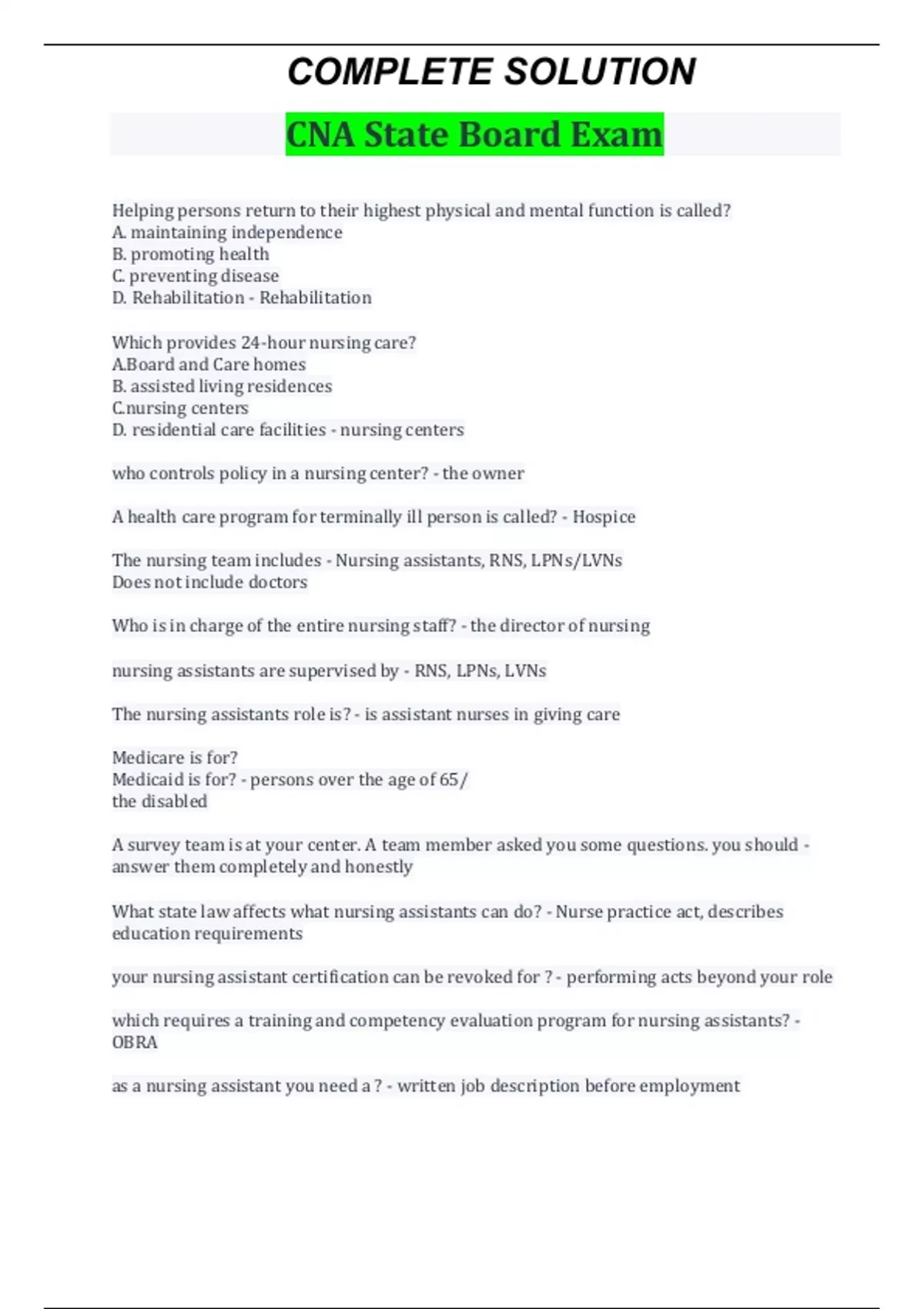 CNA STATE BOARD Exam Questions and Answers Rated A+ 2023 Correct/Verified