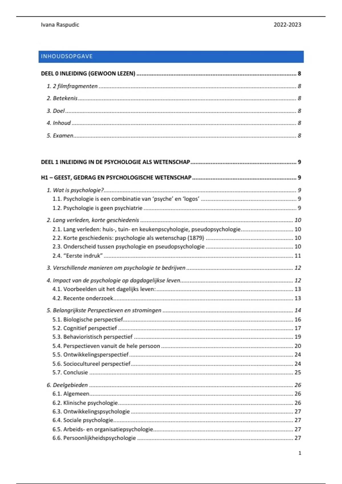 H1 – GEEST, GEDRAG EN PSYCHOLOGISCHE WETENSCHAP .............................................................. 9